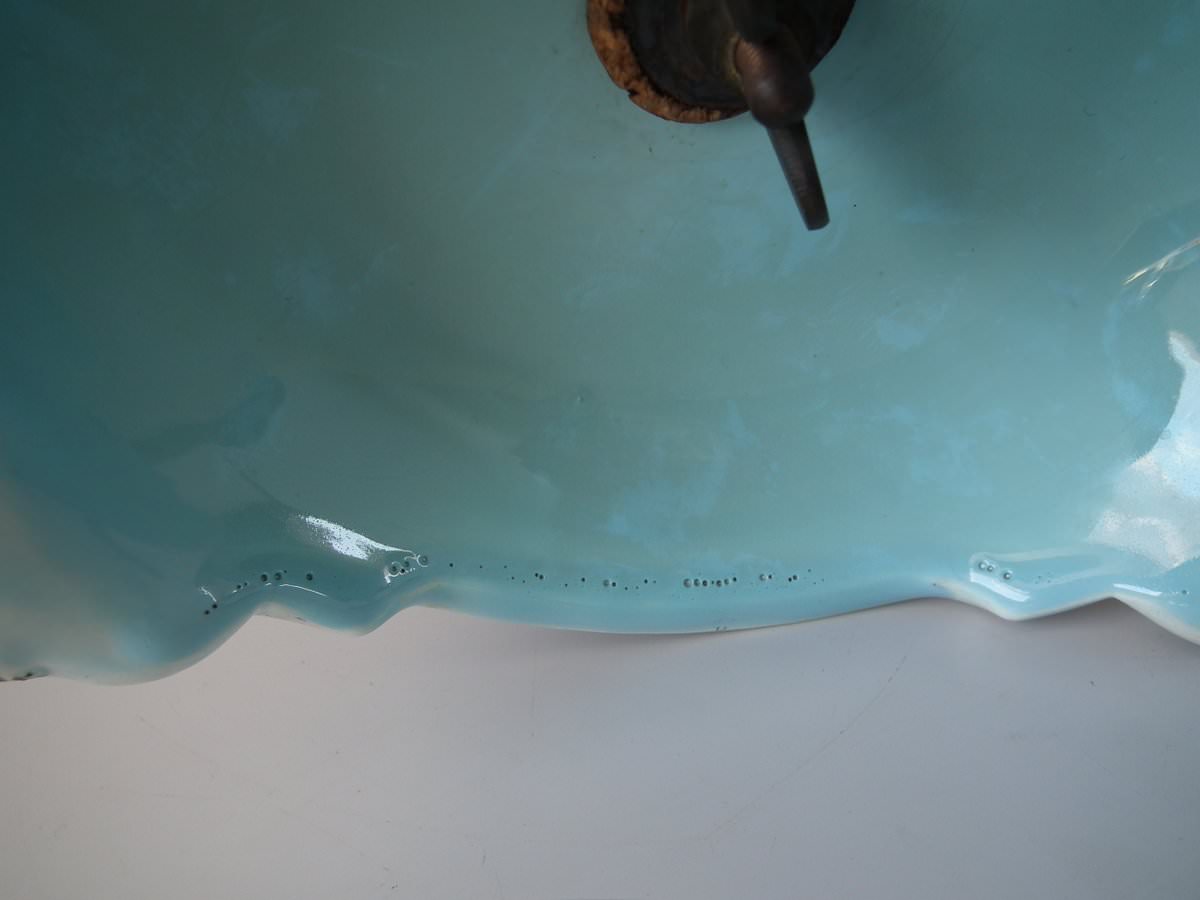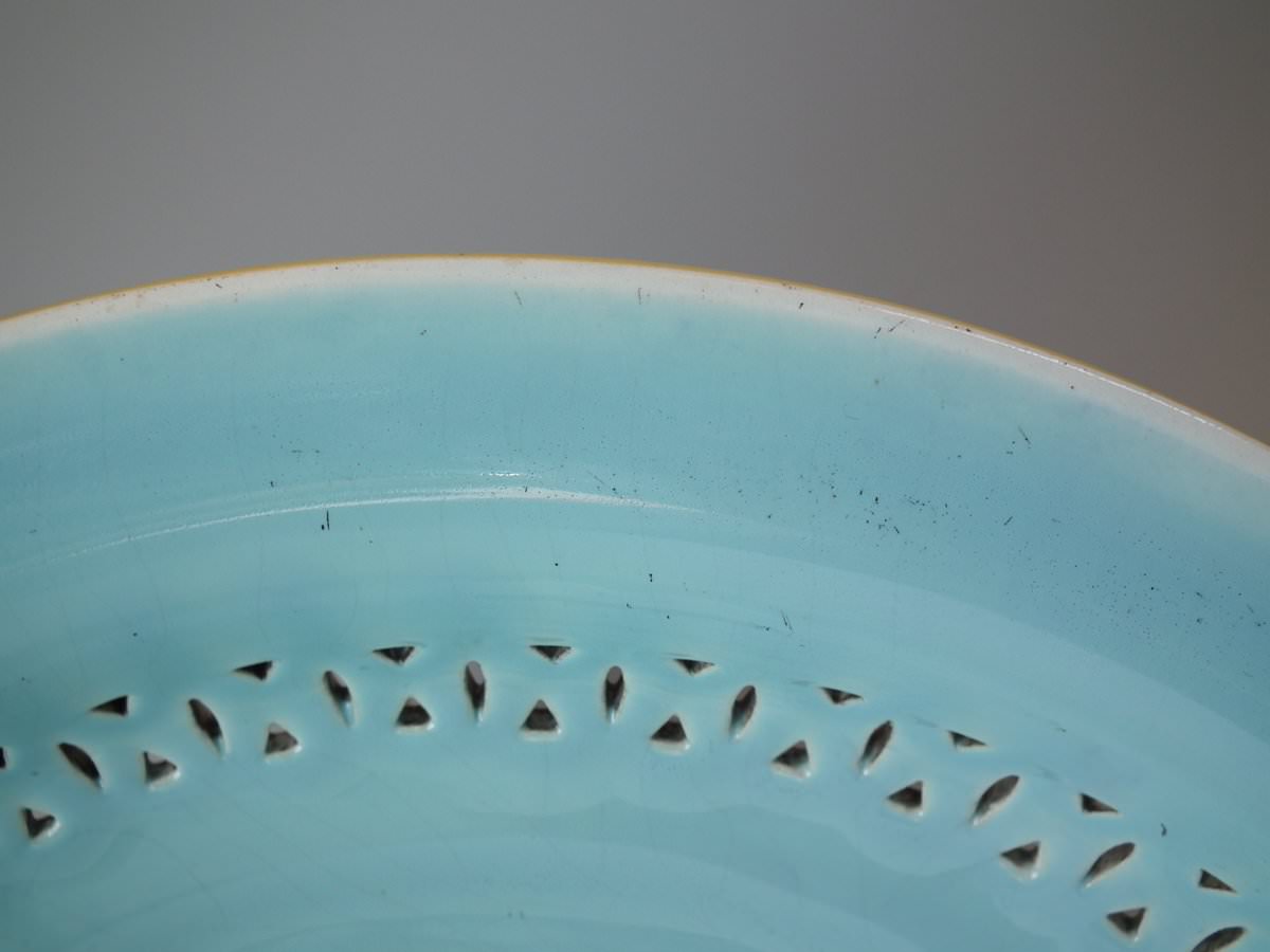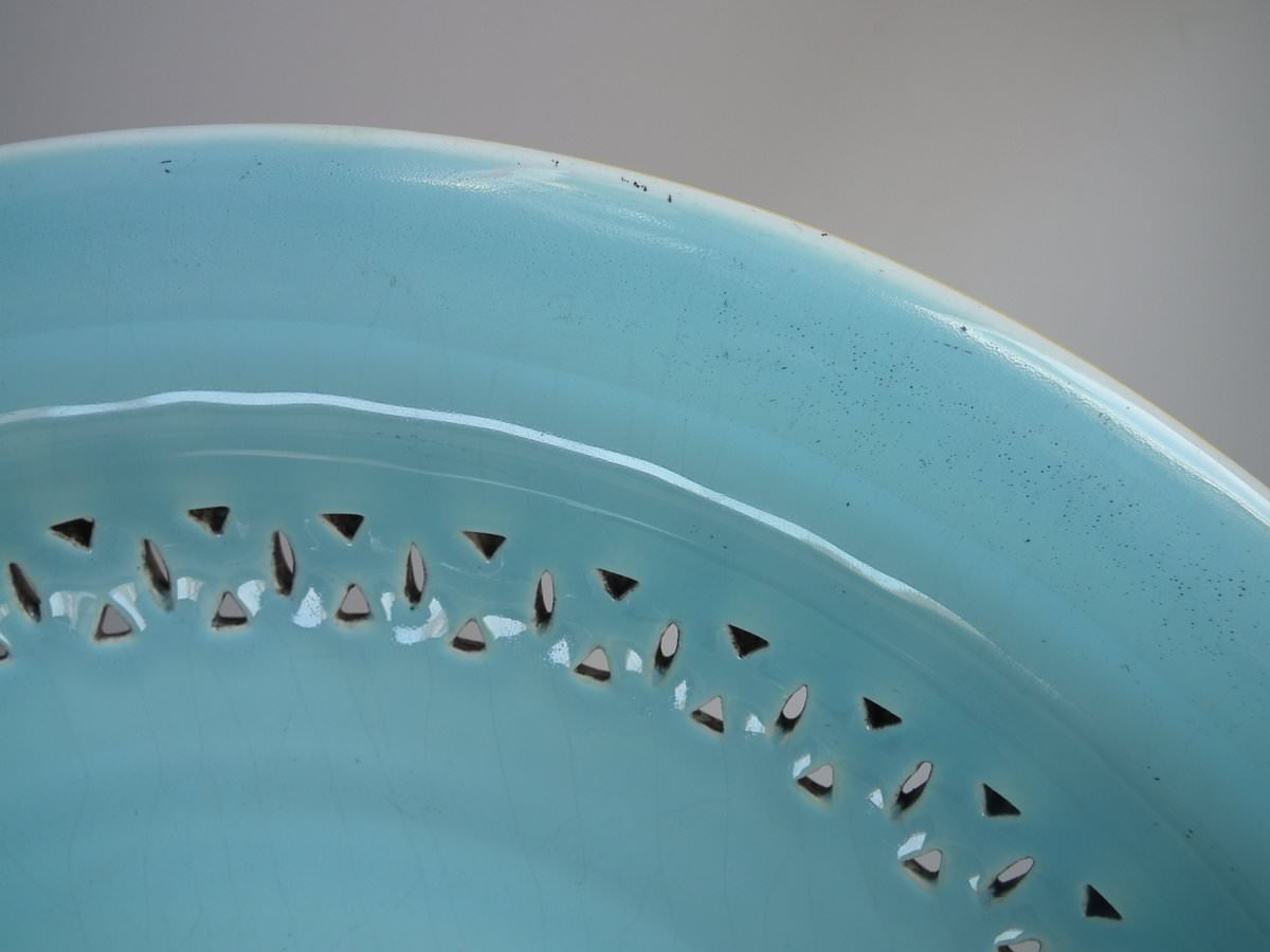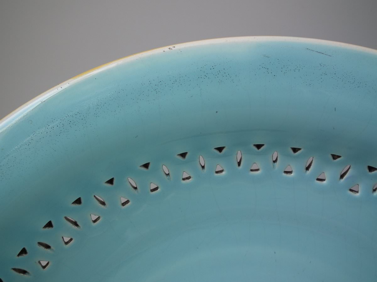 The piece bears maker's marks for the Sarreguemines pottery. Bears a pattern number, '91 E'.