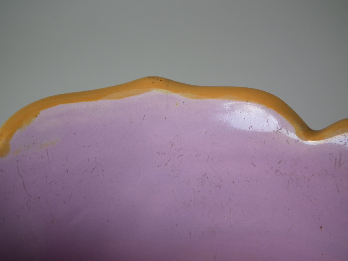RESTORATION. Filled chip to rim. Stabilised and retouched crack to rim.