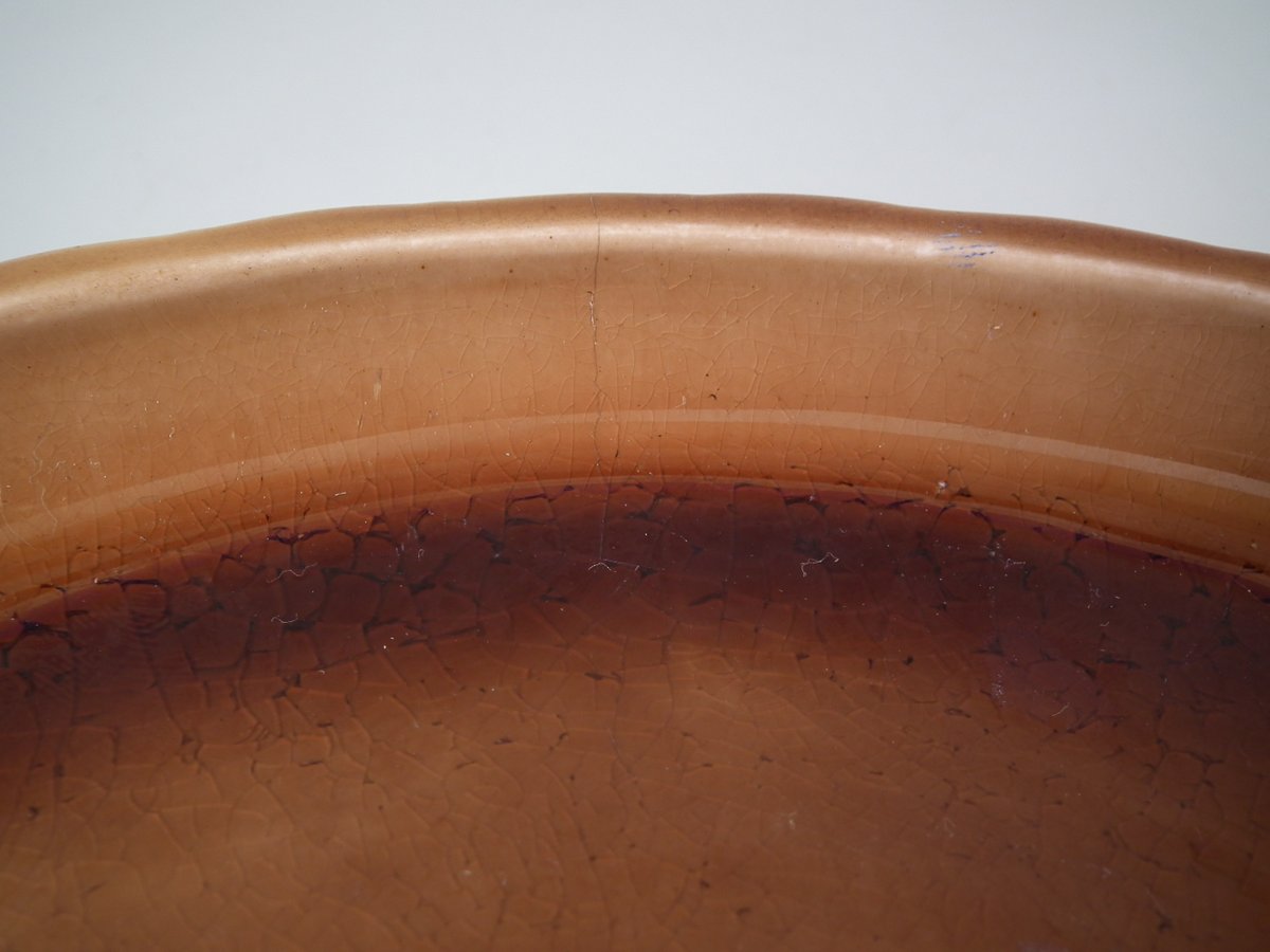 RESTORATION. Stabilised and retouched crack to rim running up side.