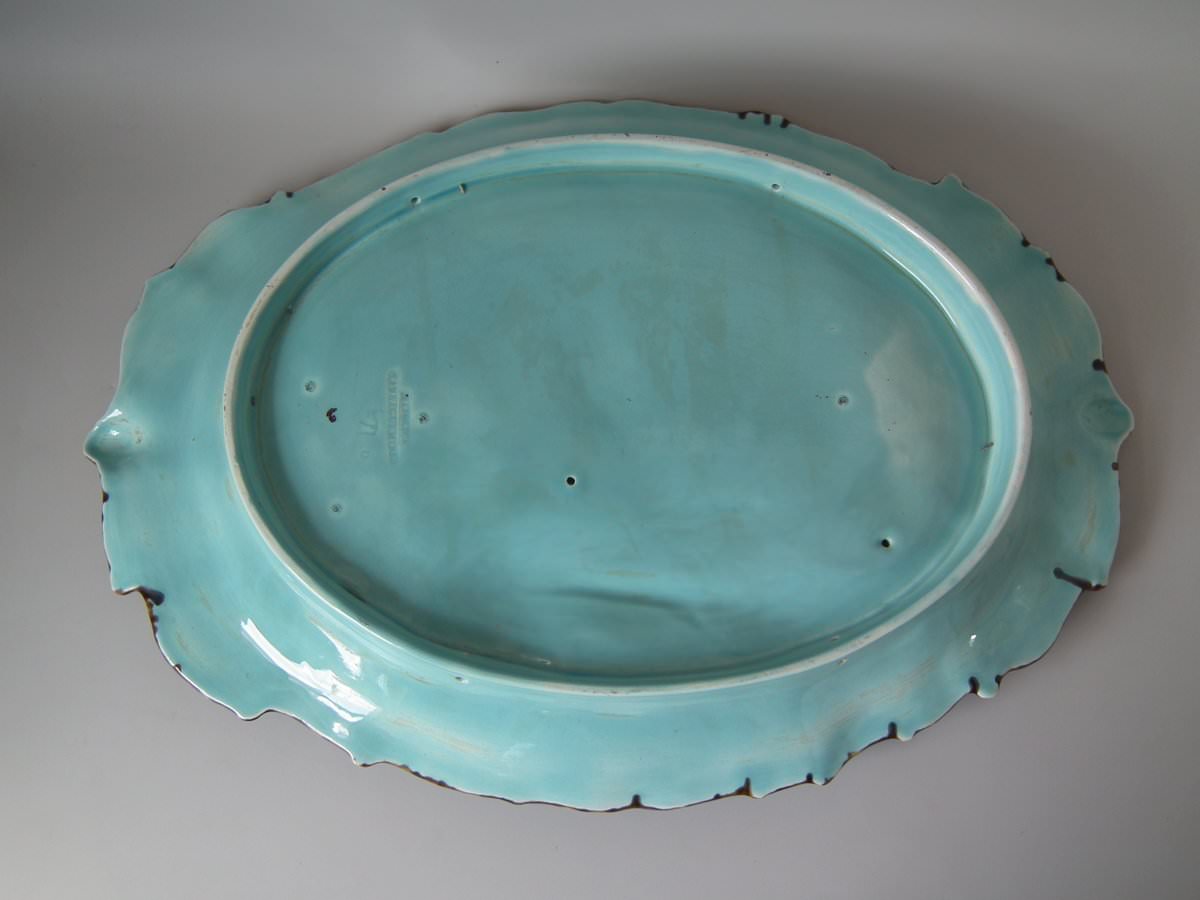 The piece bears maker's marks for the Sarreguemines pottery.