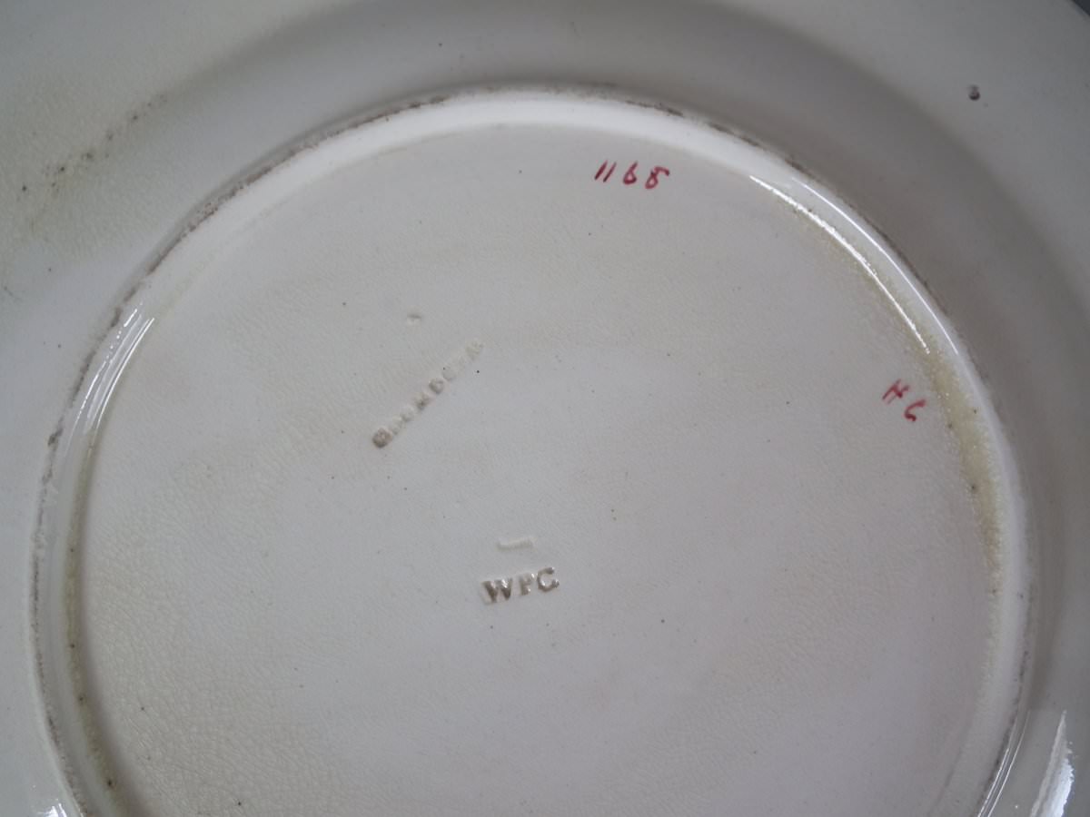 The piece bears maker's marks for the Wedgwood pottery. Bears a pattern number, '1168'.