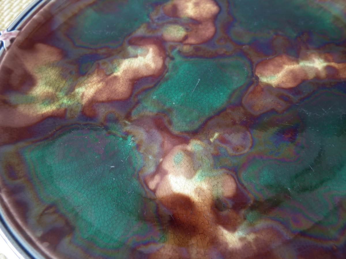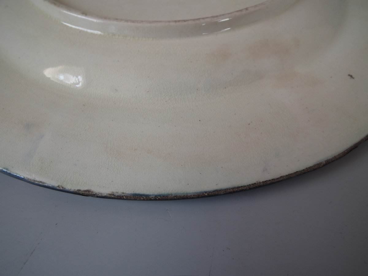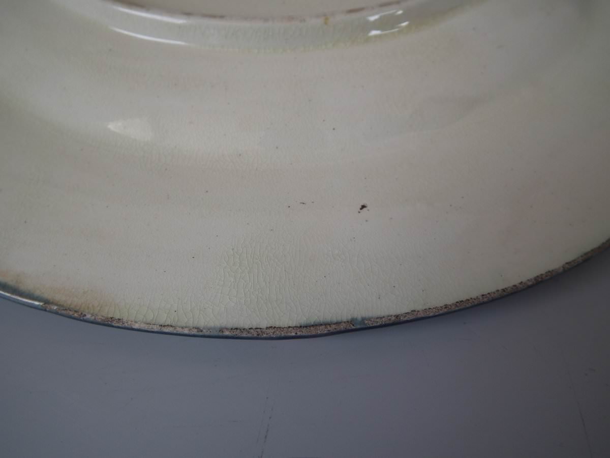 Victorian, circa 1874. 9.3ins high, 9.3ins wide, 0.8ins depth. Wedgwood Majolica plate which features mottled green and brown centre, surrounded by basket weave border.