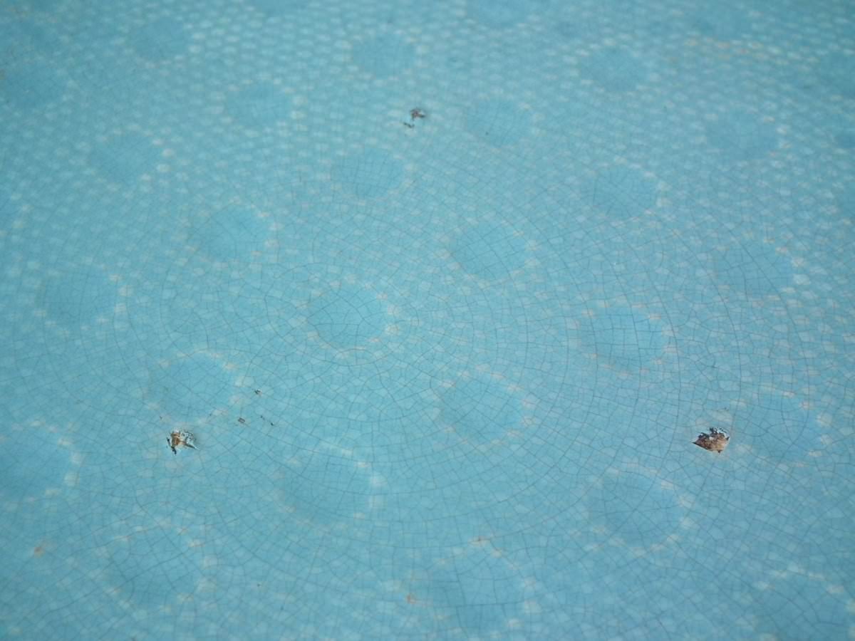 KILN EFFECTS: kiln detritus caught in the glaze.
