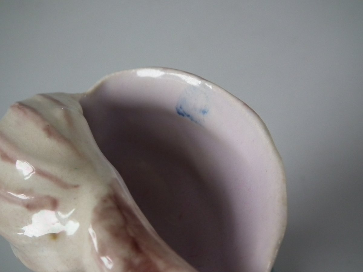 KILN EFFECTS: fleck of stray coloured glaze to the inner rim of shell.