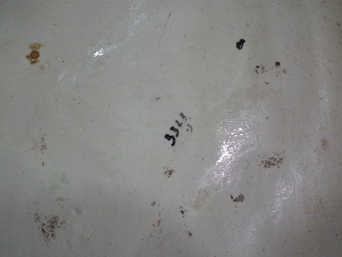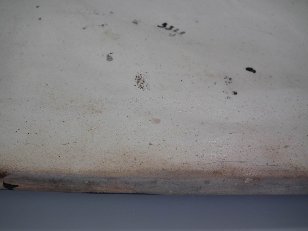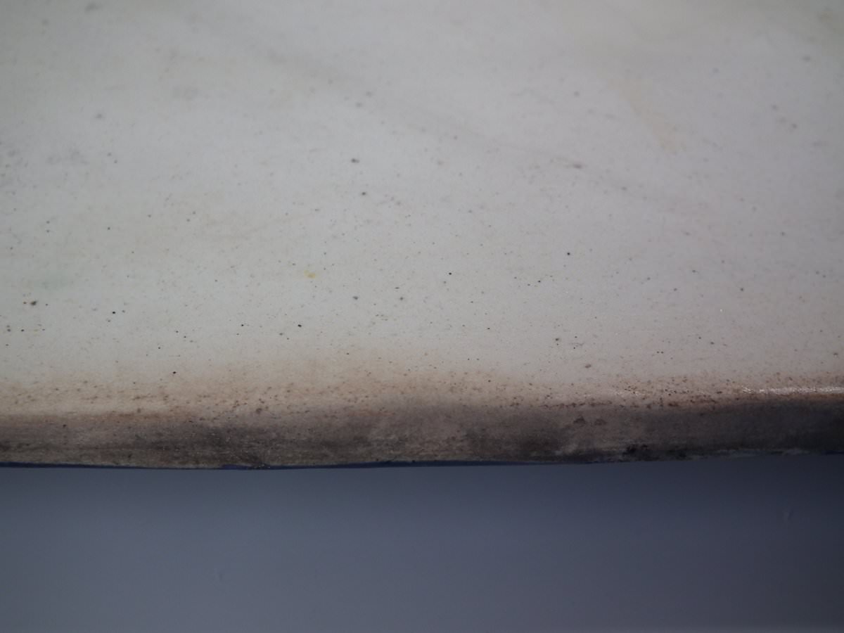 RESTORATION. Filled chips and flakes to the underside, rim, flower and leaves.