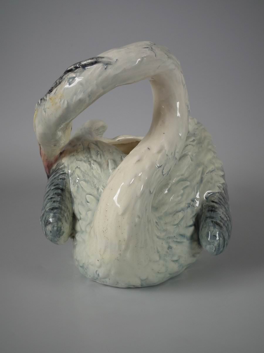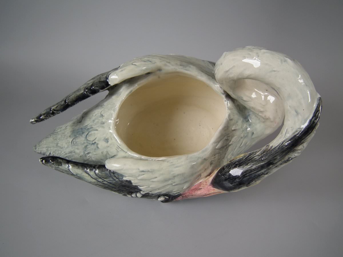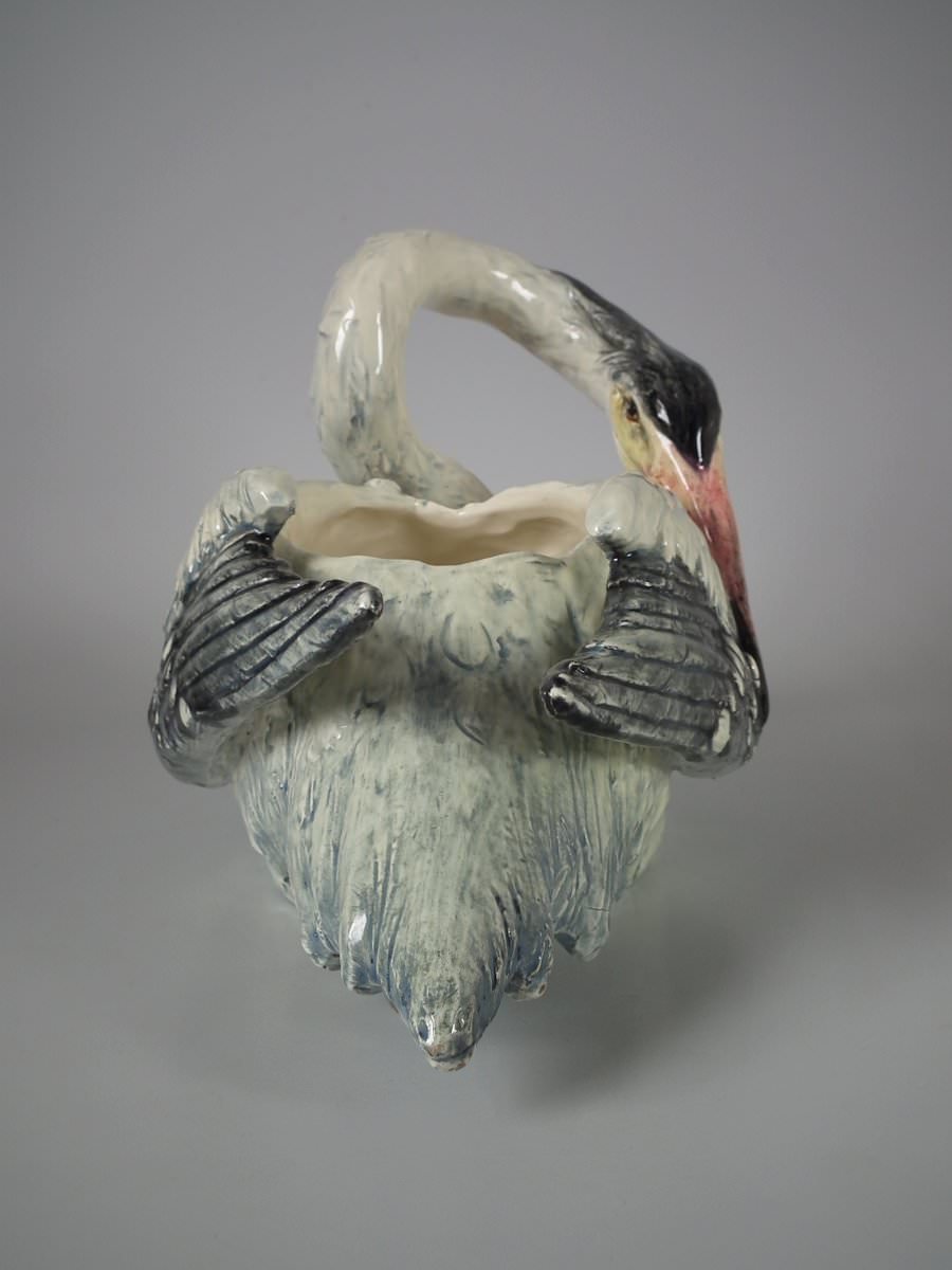 Victorian, circa 1900. 7.1ins high, 11.8ins wide, 6.7ins depth. Delphin Massier Majolica planter which features a heron.