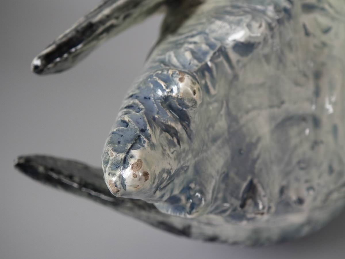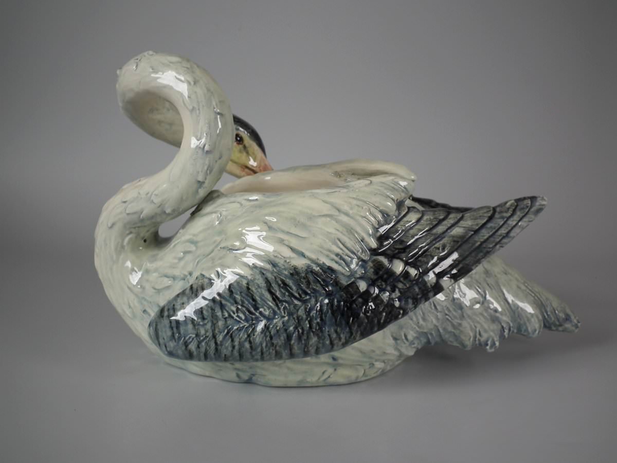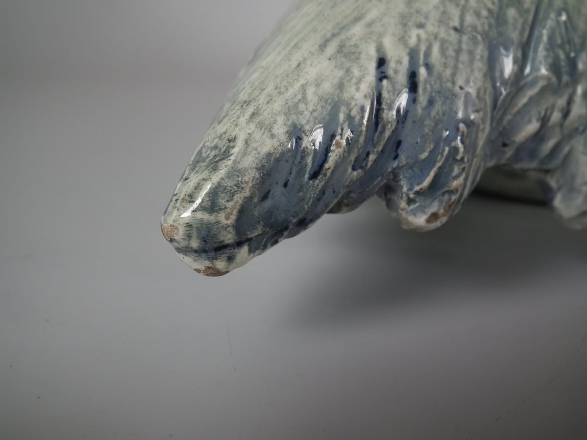 Victorian, circa 1900. 7.1ins high, 11.8ins wide, 6.7ins depth. Delphin Massier Majolica planter which features a heron.