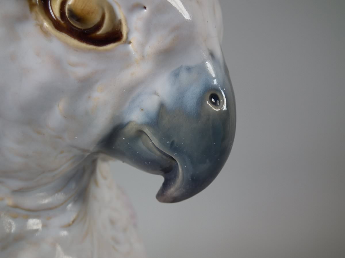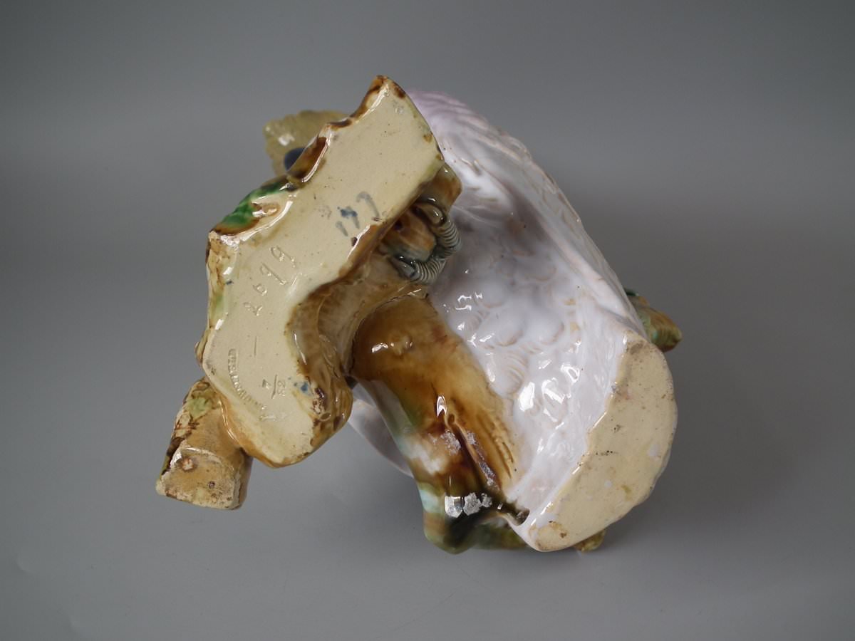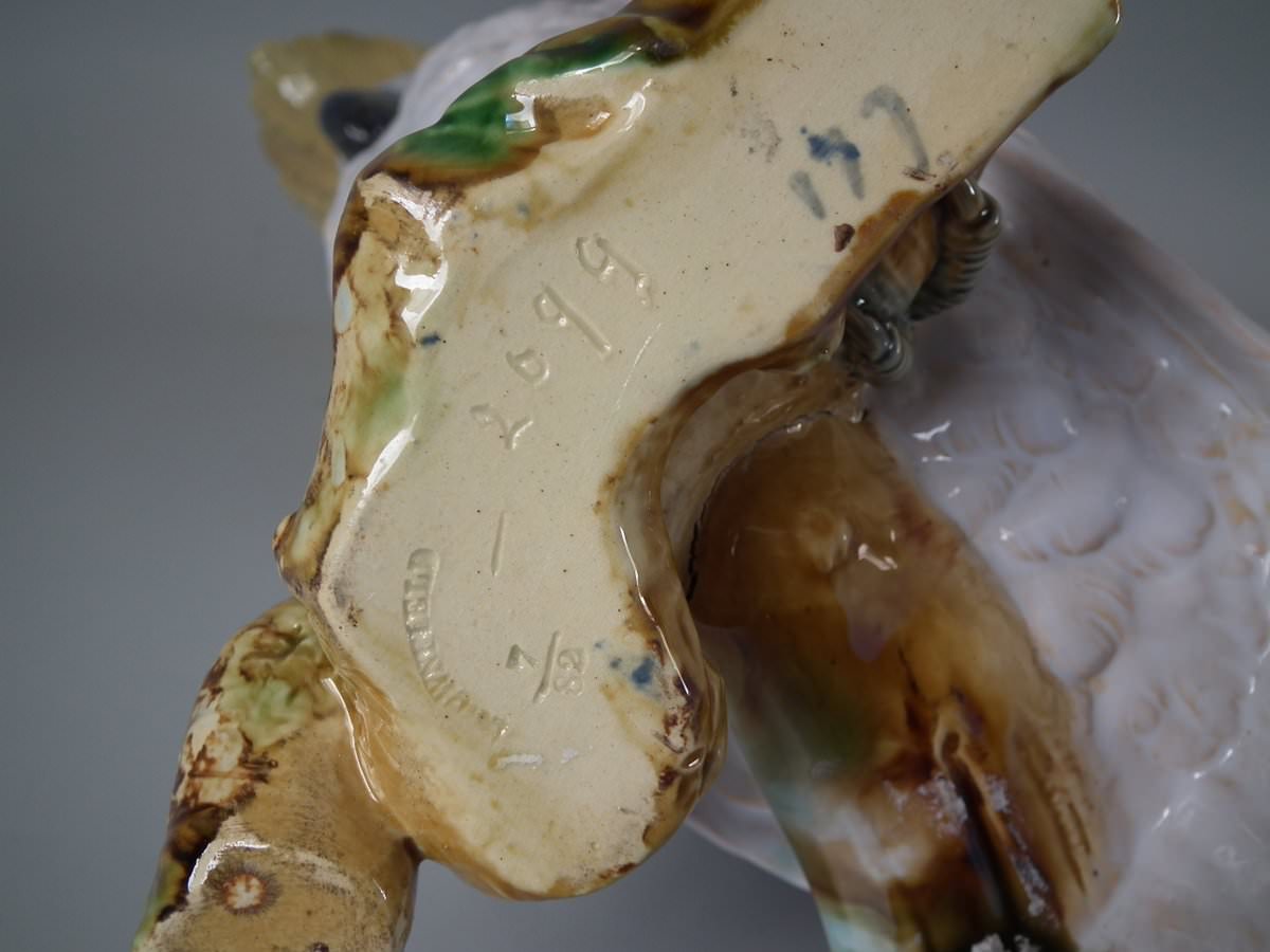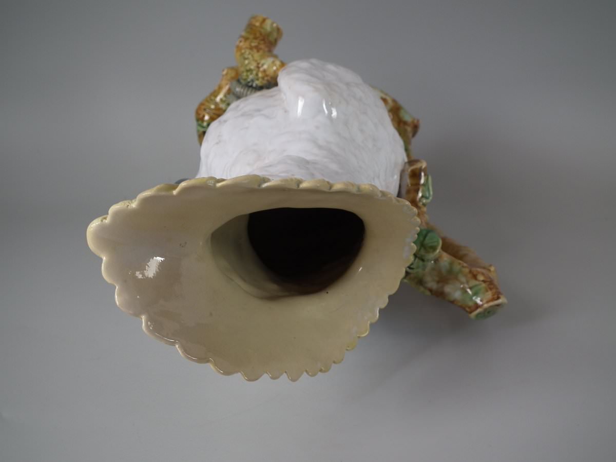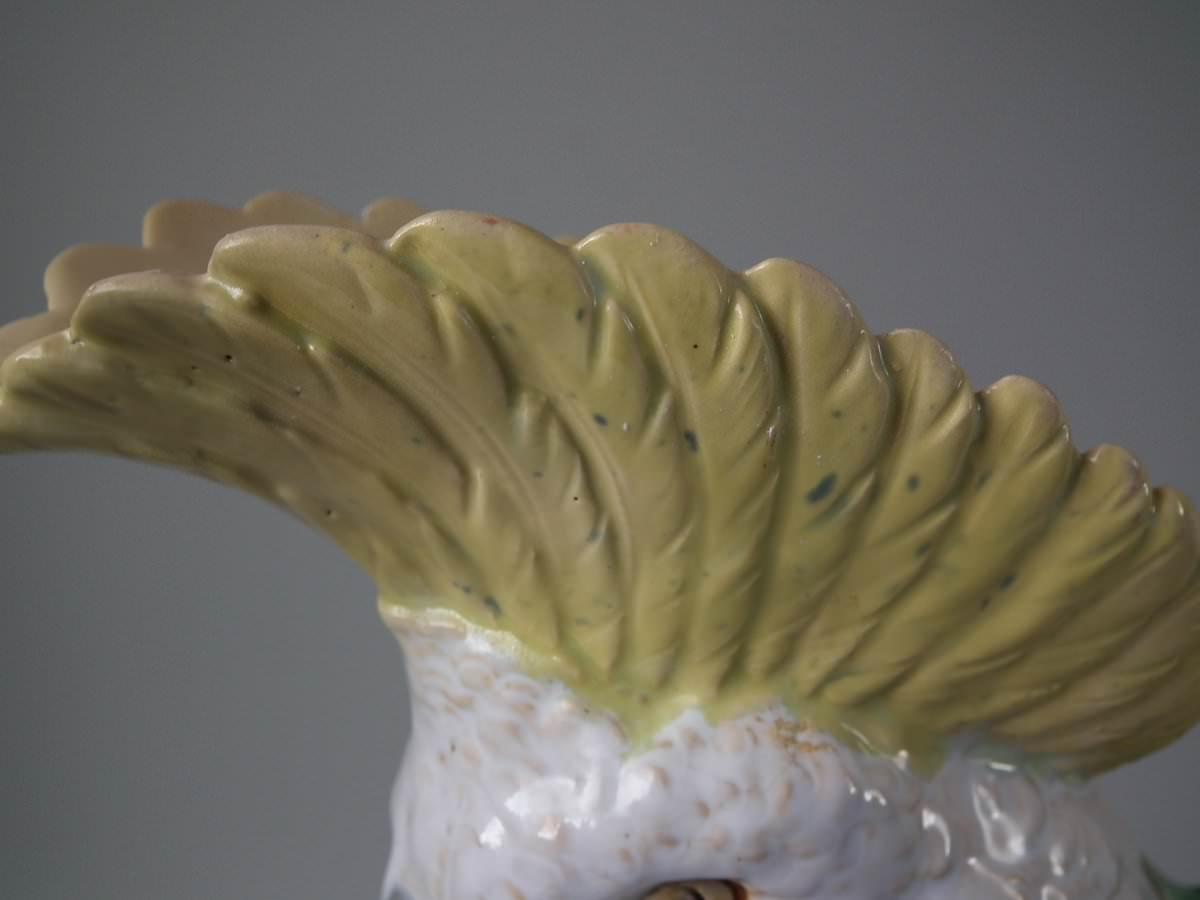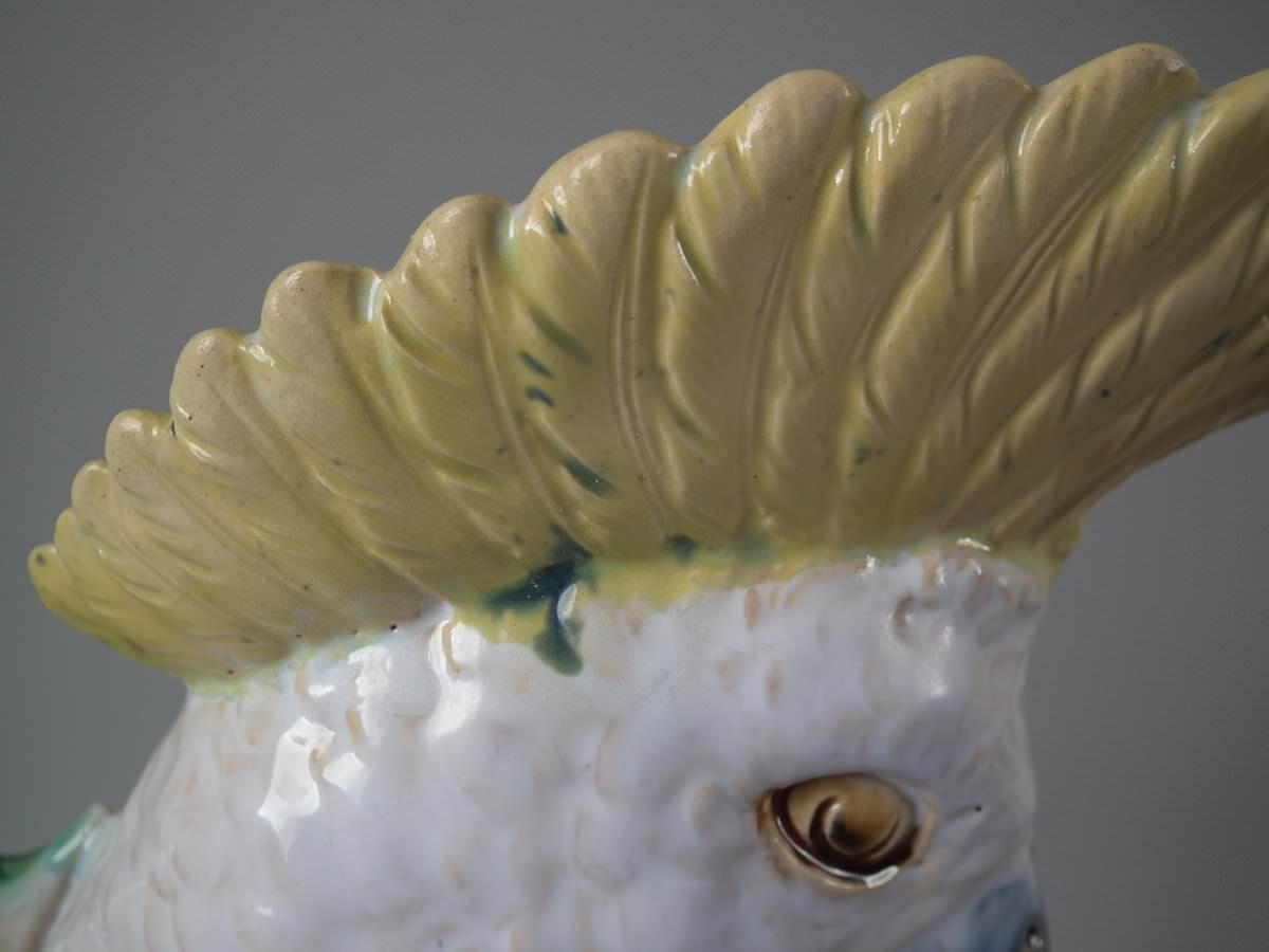 Victorian, circa 1870. 12.6ins high, 5.1ins wide, 9.4ins depth. Brownfield Majolica jug/pitcher which features a cockatoo, with branch handle.