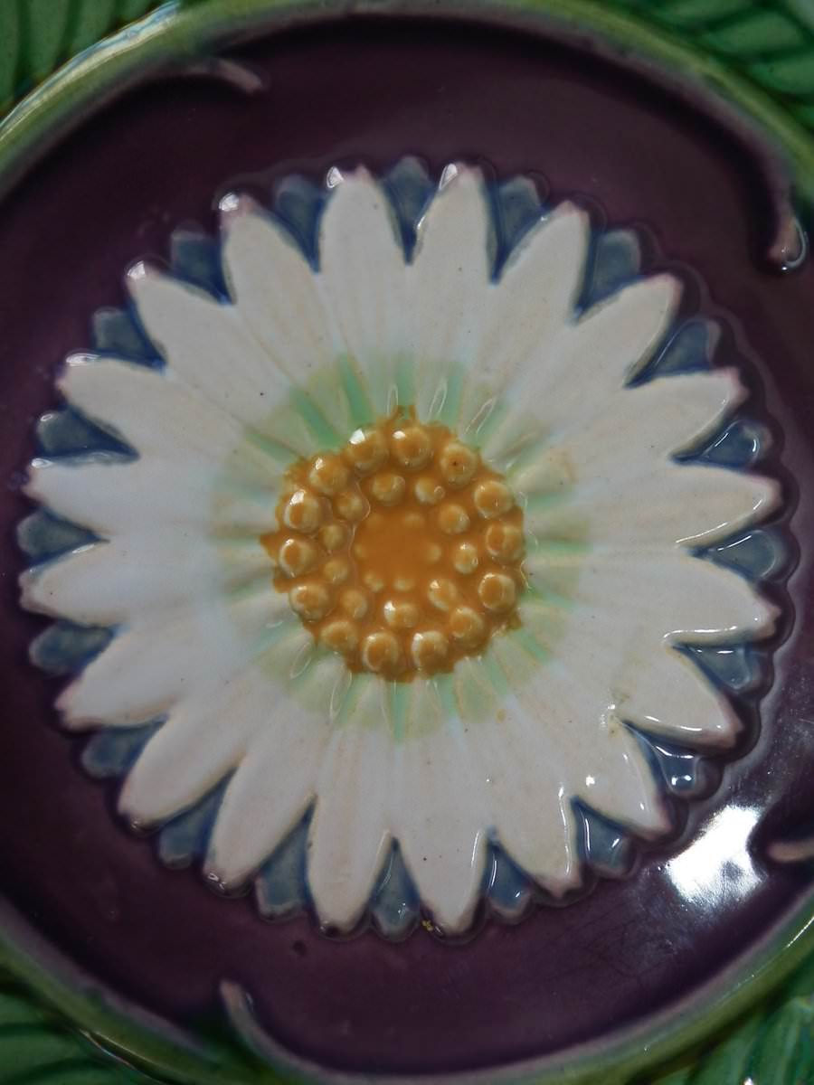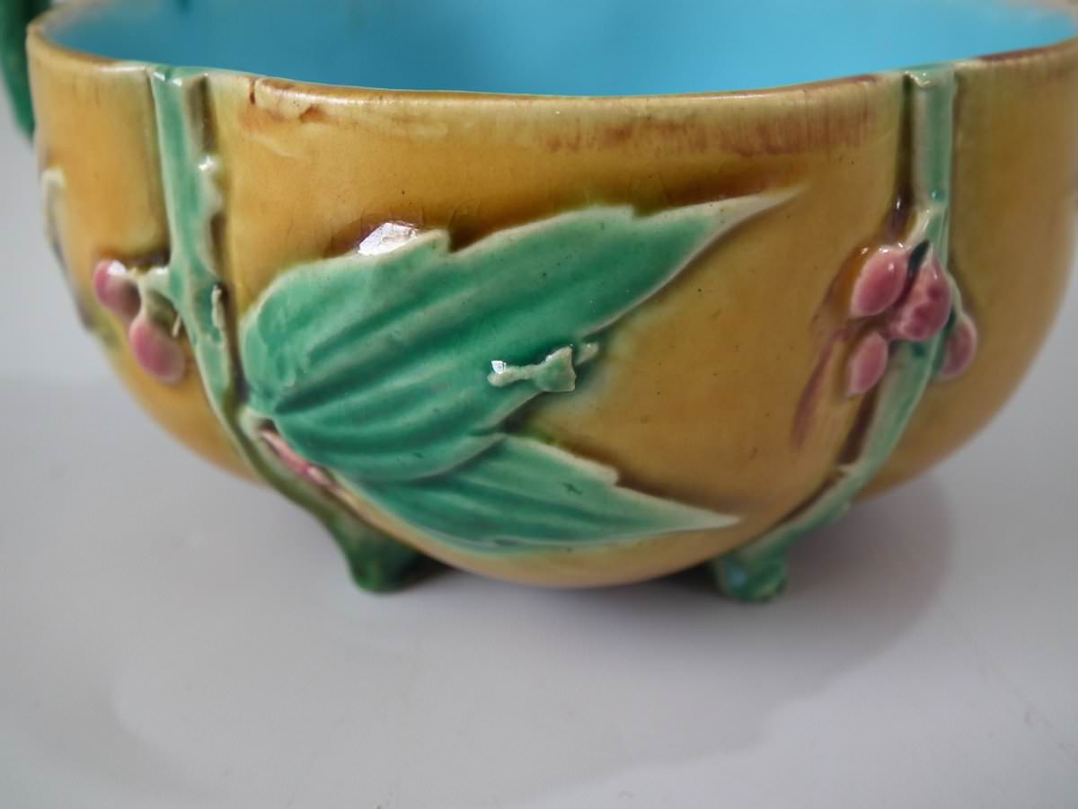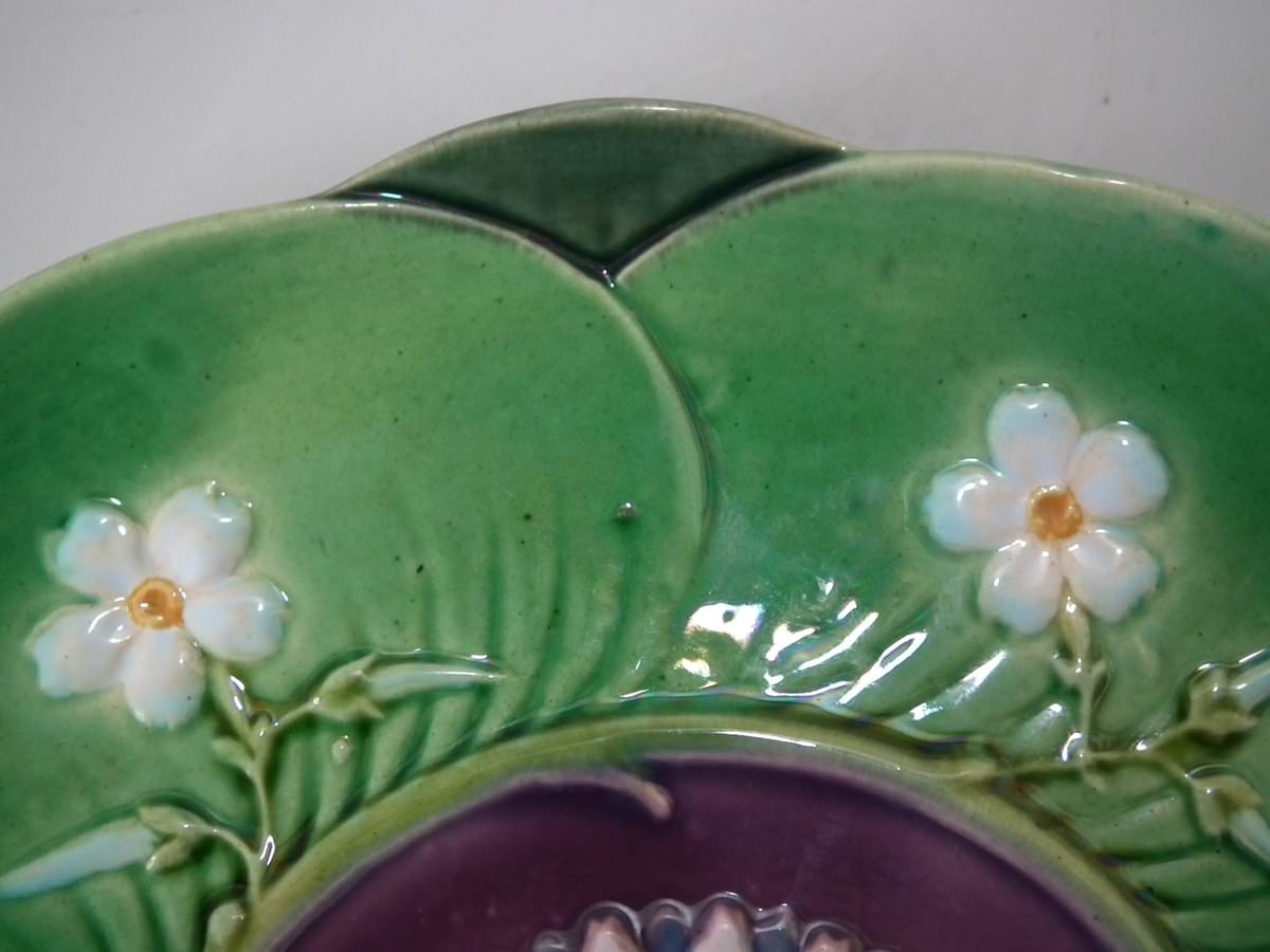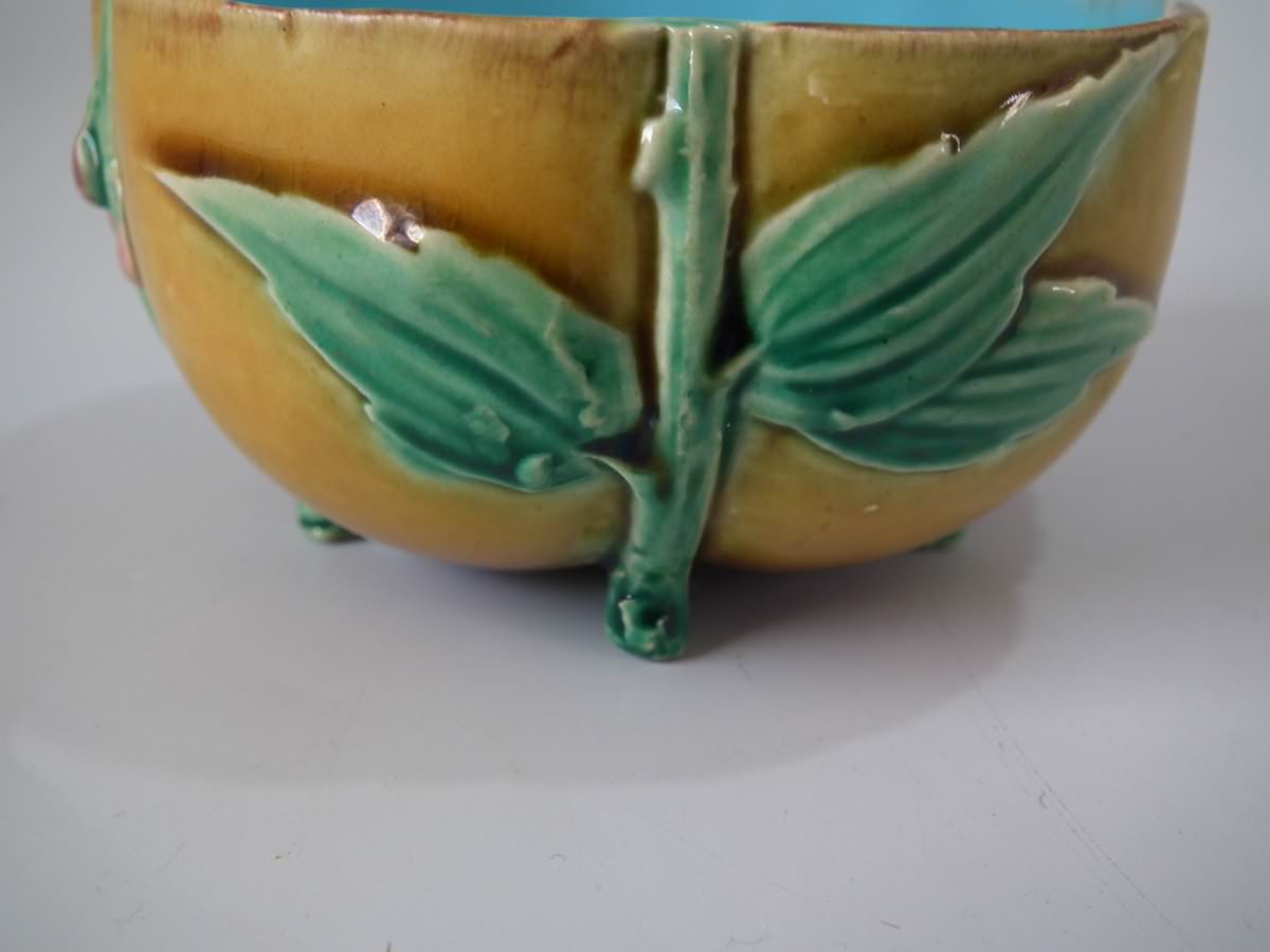 Victorian, circa 1869. 2.8ins high, 5.7ins wide, 5.7ins depth. Minton Majolica cup & saucer which features lily pads, leaves and blossom.