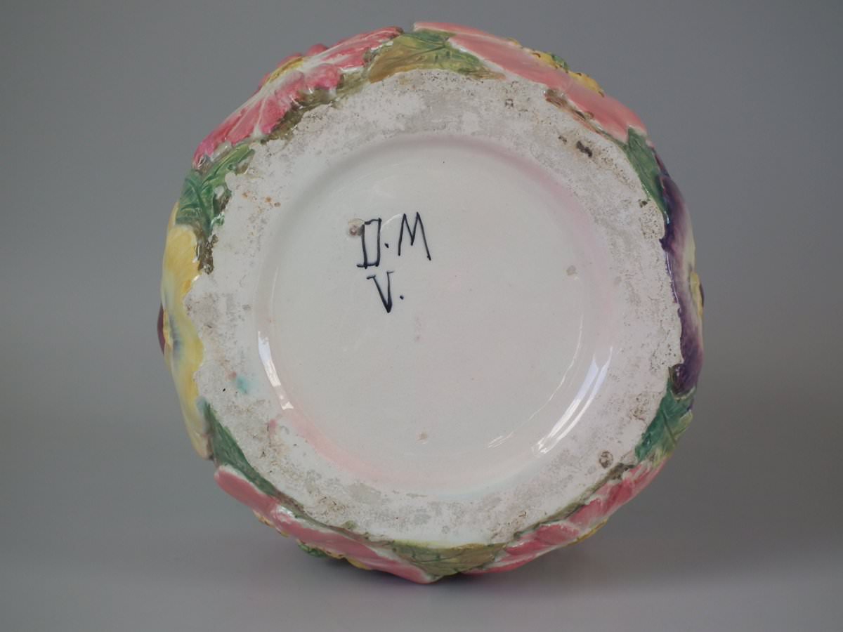 The piece bears maker's marks for the Delphin Massier pottery.