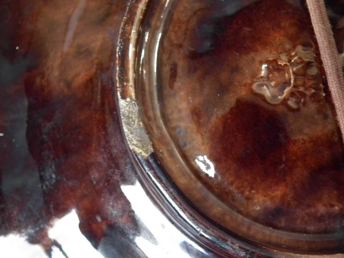 CONDITION: Good. No restoration. Chip to claw of one lizard and few to footrim these are associated to stilt marks.