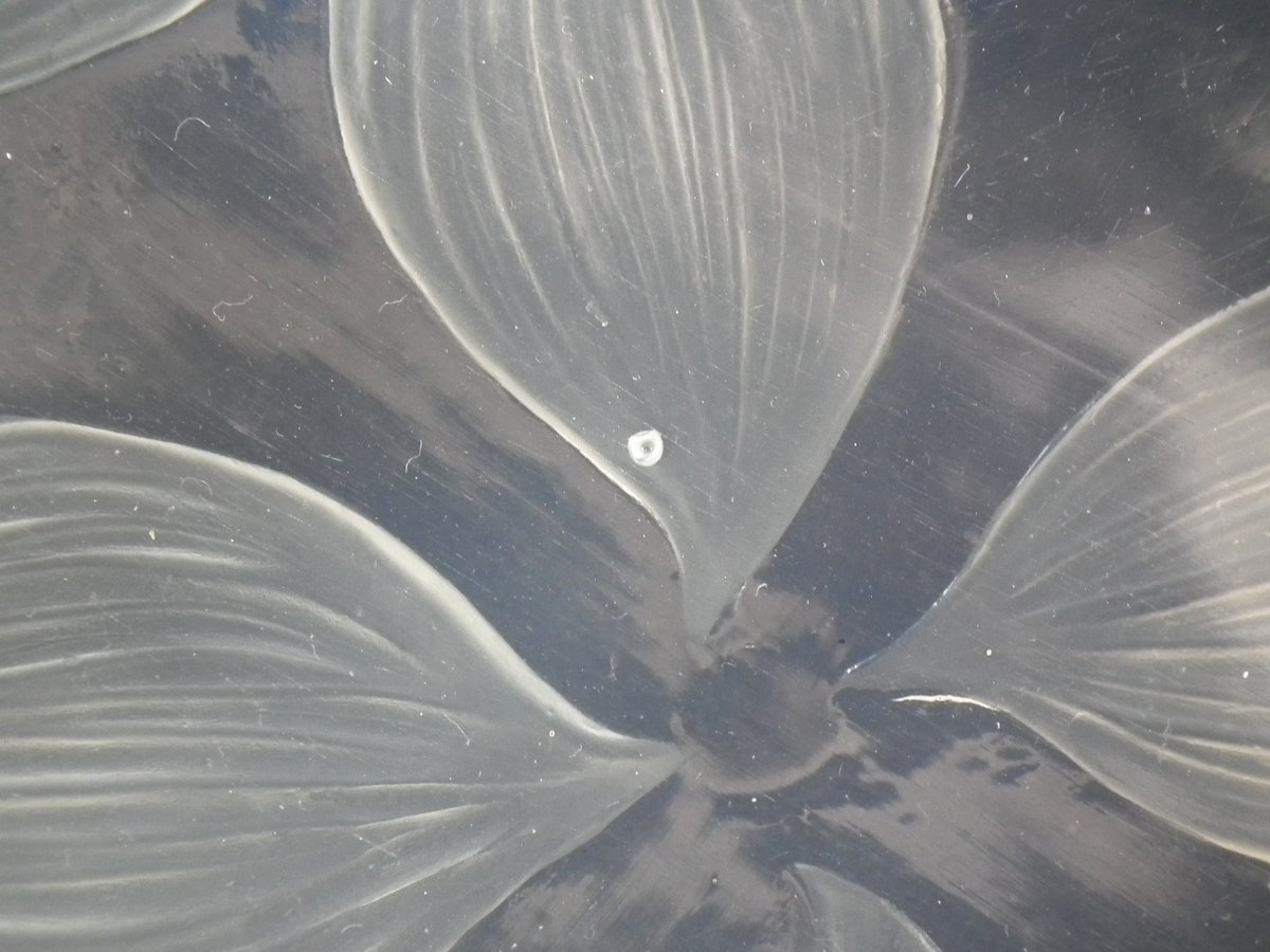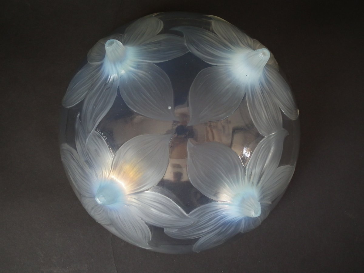 Introduced in 1924. Height: 12.5cm (4.92ins). Width: 23.9cm (9.41ins). Depth: 23.9cm (9.41ins).. Rene Lalique Opalescent Glass 'Lys' Bowl.