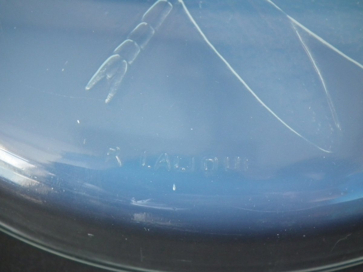 The top has moulded maker's mark, 'R.LALIQUE'. The base has stencilled, R.LALIQUE FRANCE'.