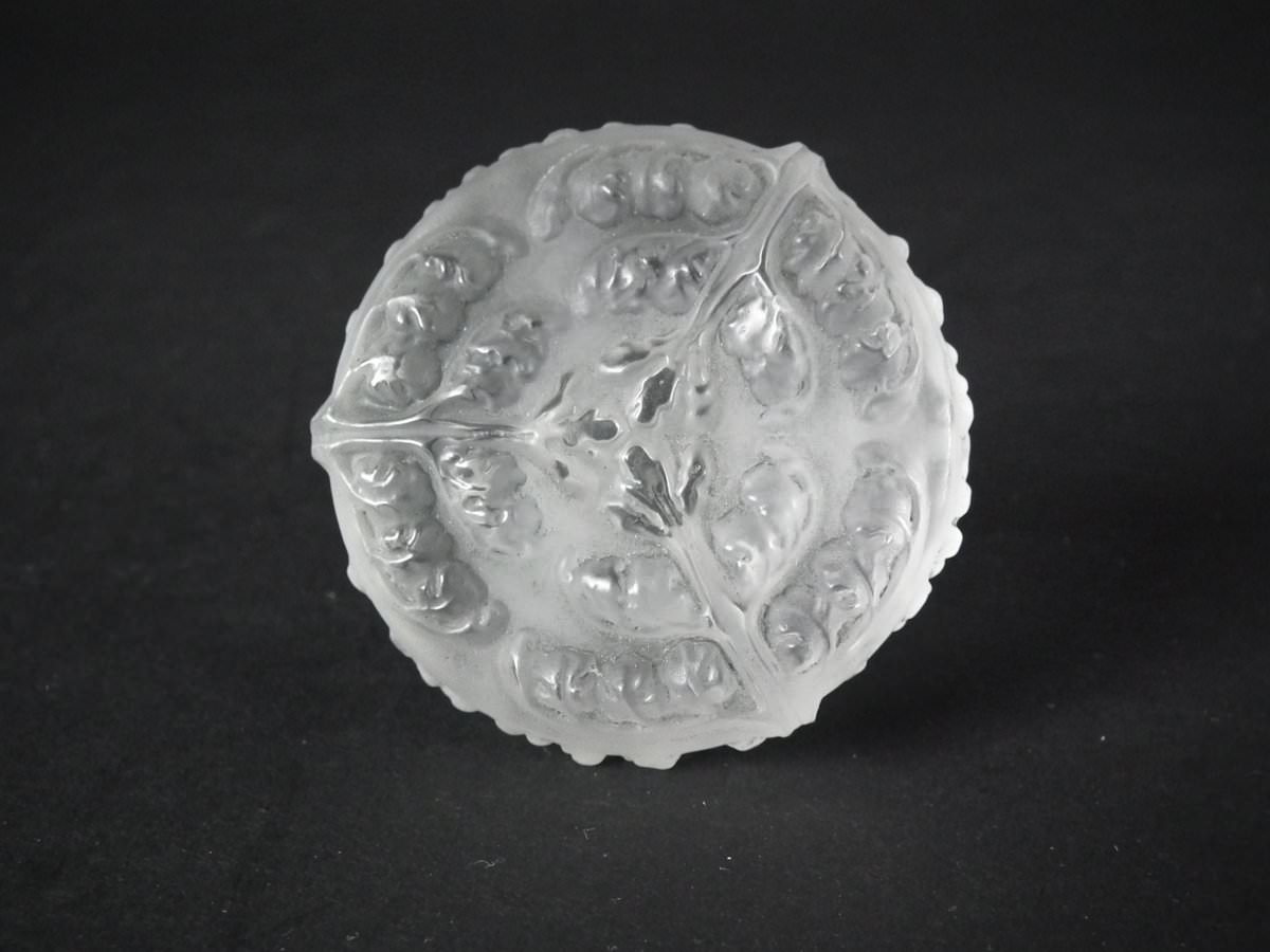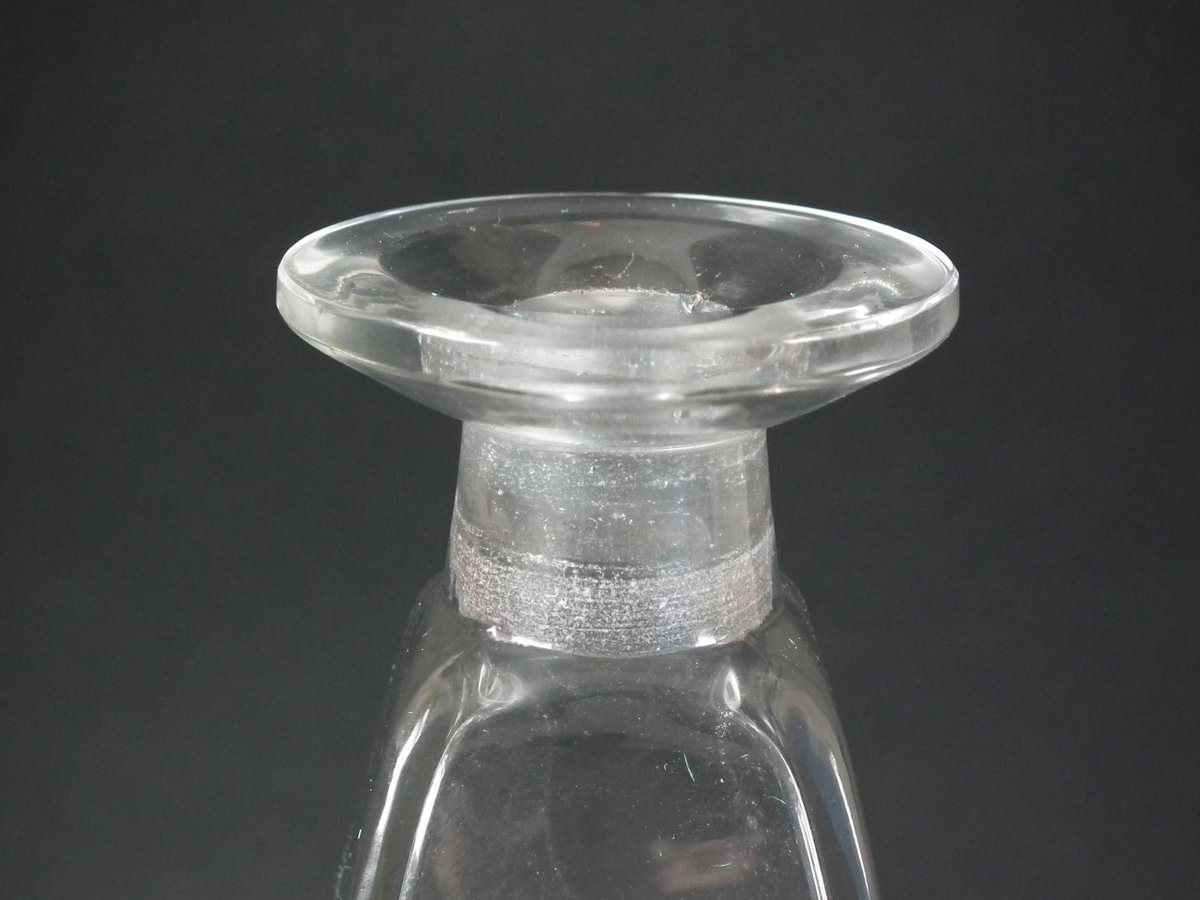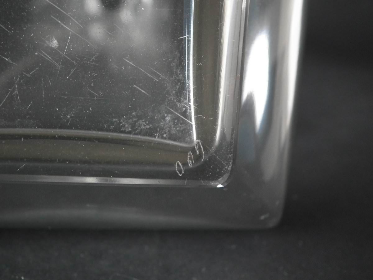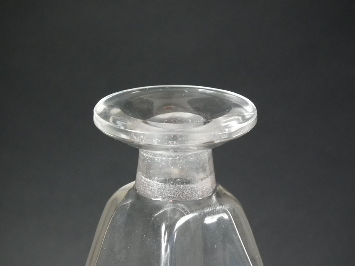 Engraved makers mark, 'R. Lalique' to the side of the base. Also, '600' engraved into the underside and on the stopper bung.