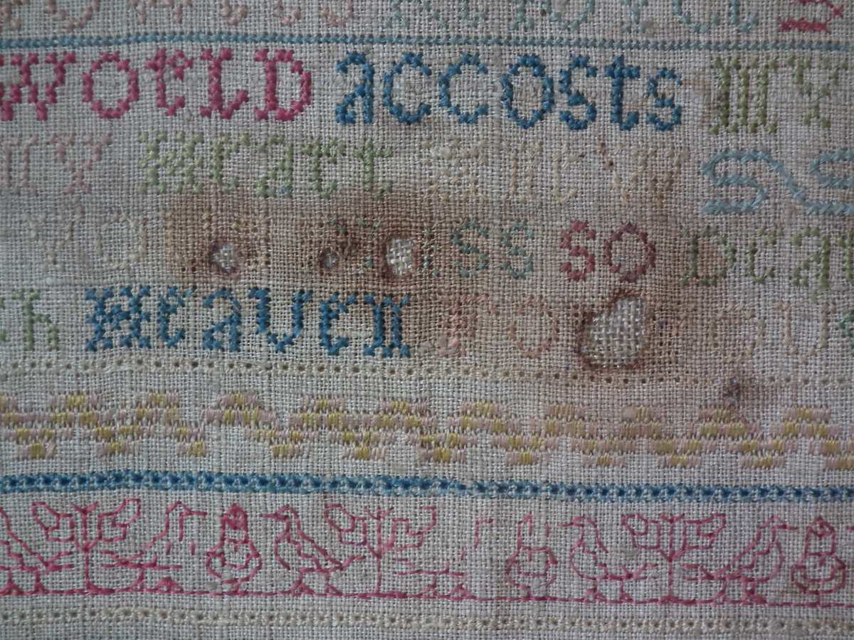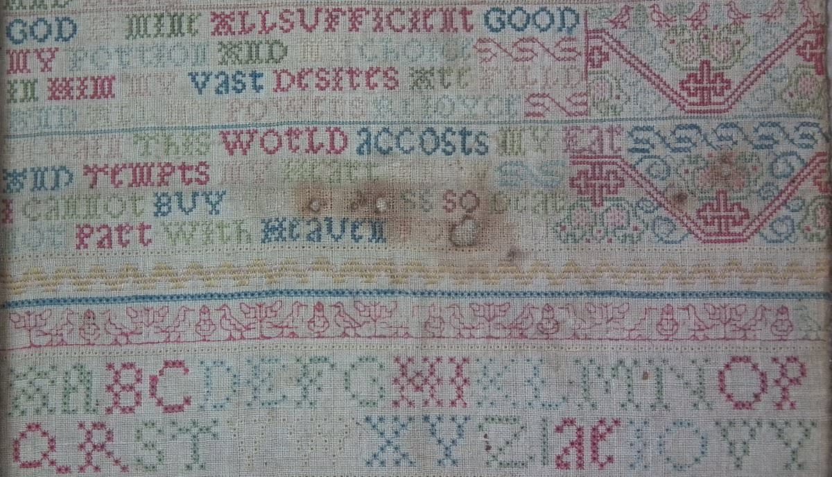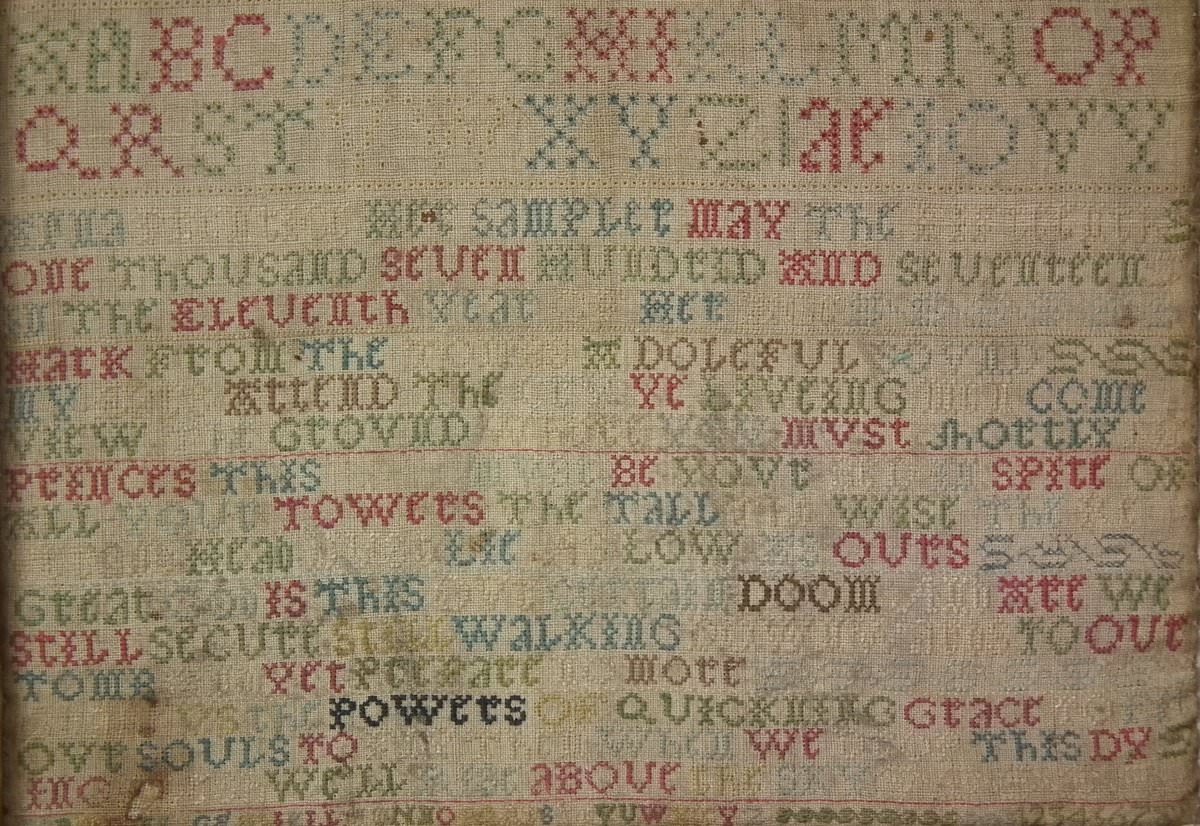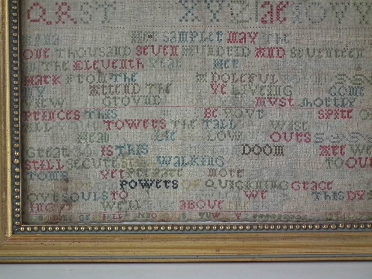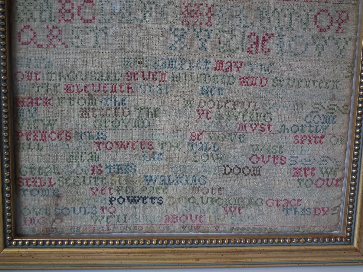 'Anna Prentice Her Sampler May The Fifteenth One Thousand Seven Hundred And Seventeen In The Eleventh Year Of Her Age'.