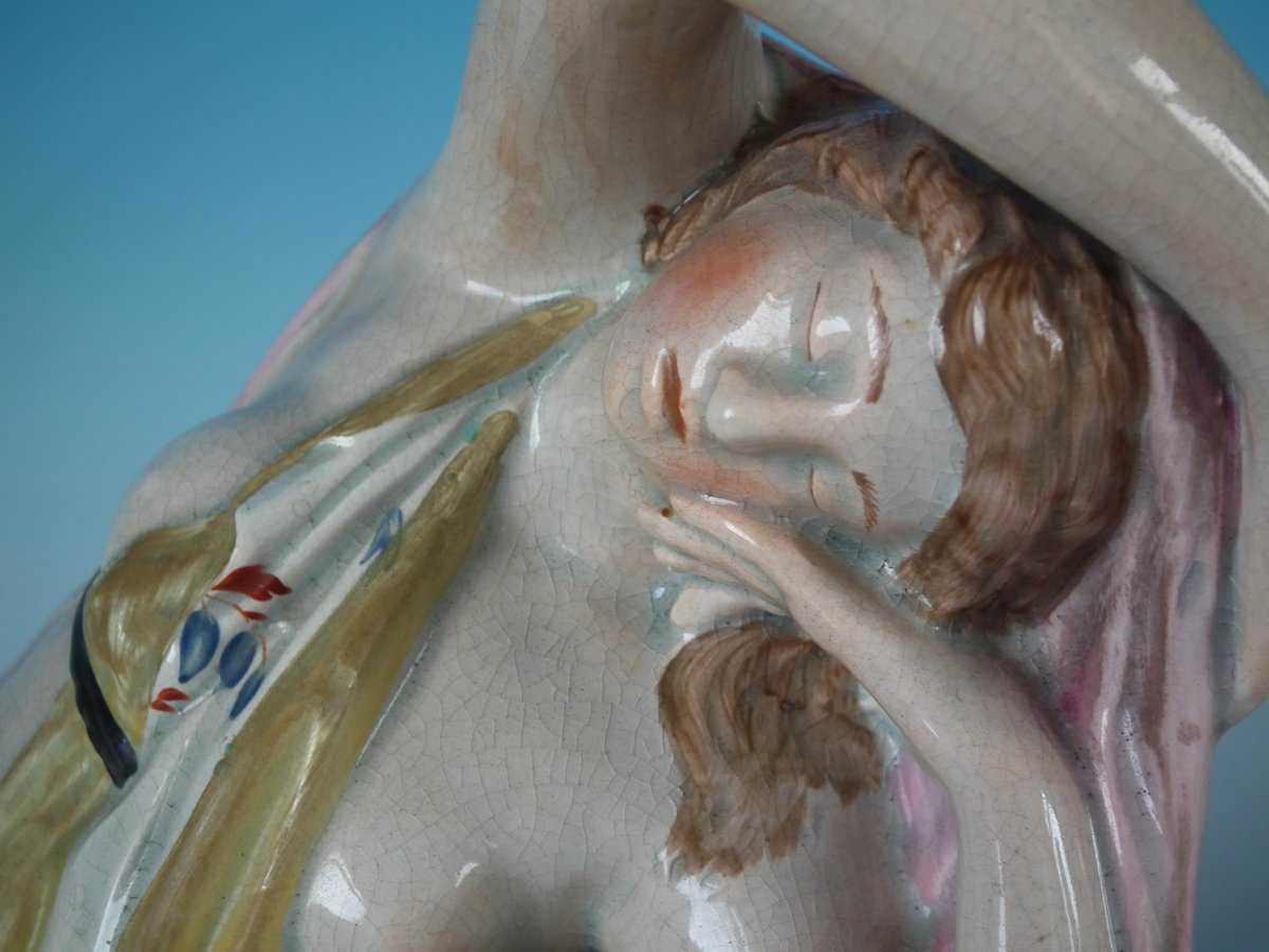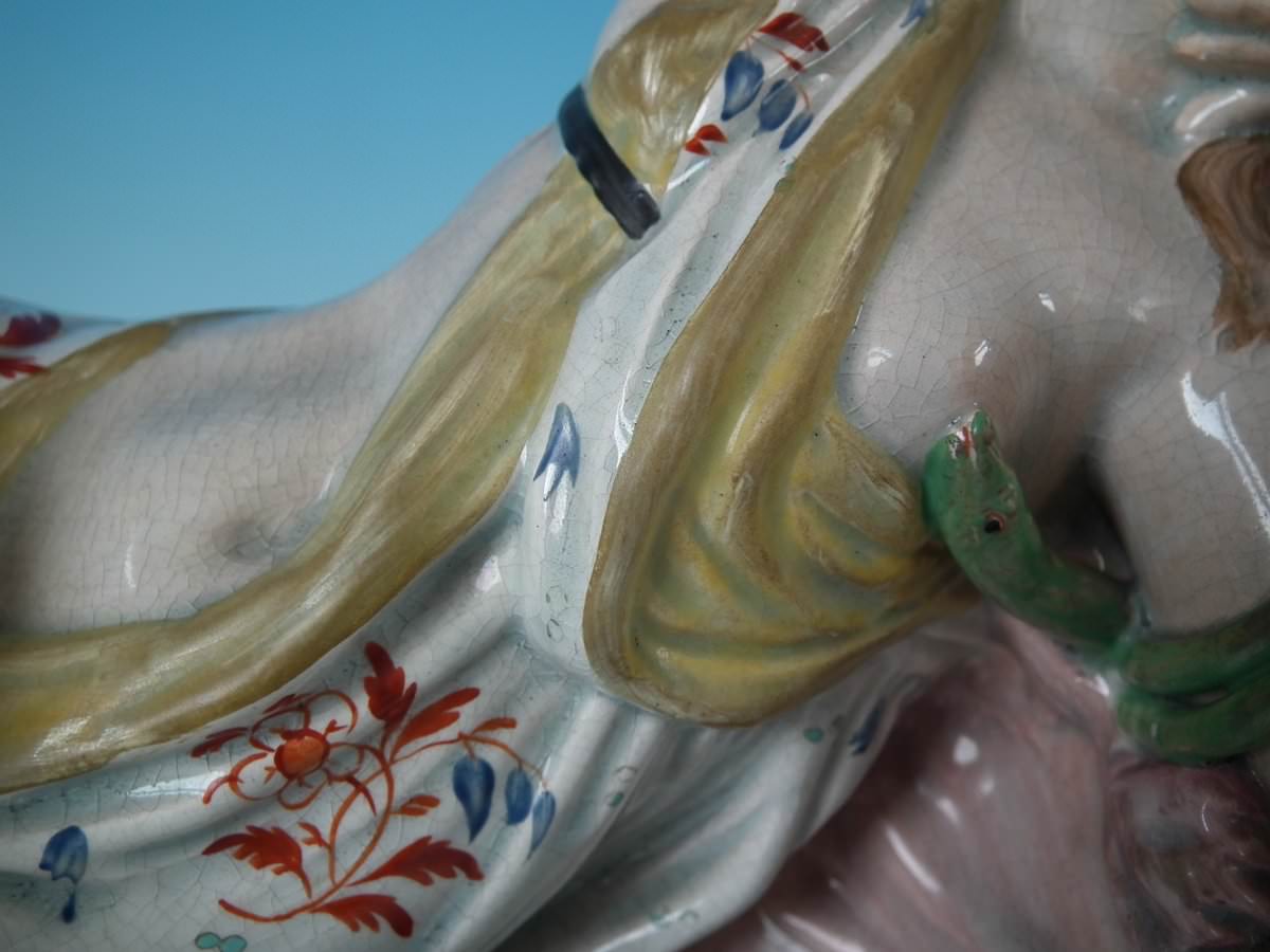 Cleopatra: Good. No restoration. Two small flakes, one to hem of dress and one to right foot.