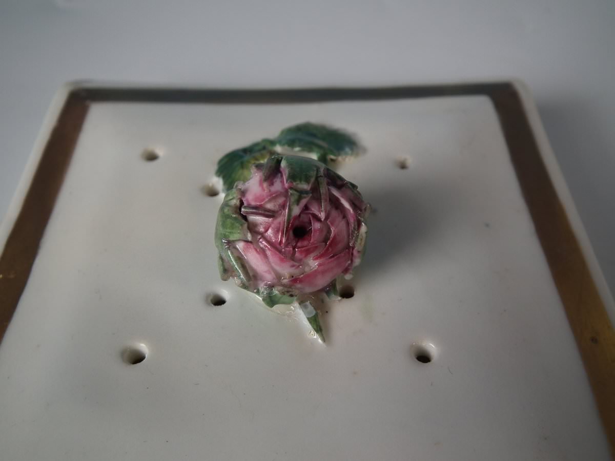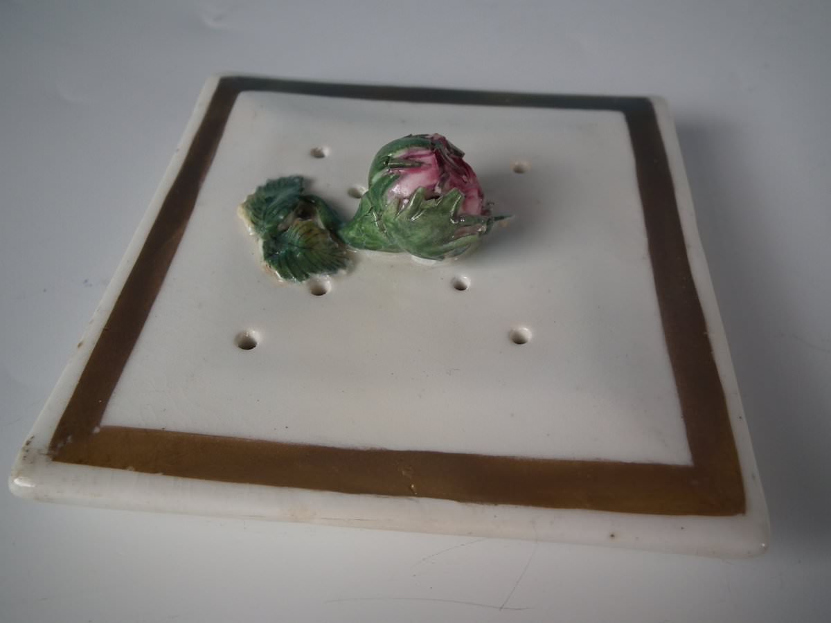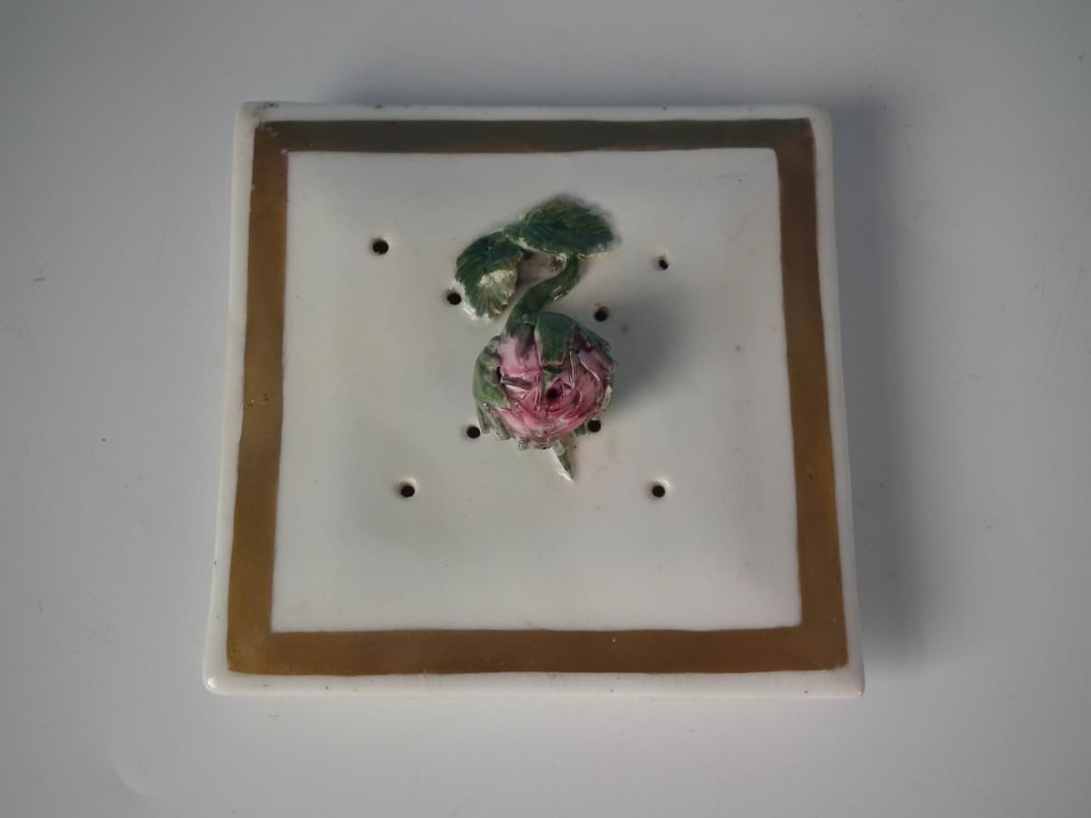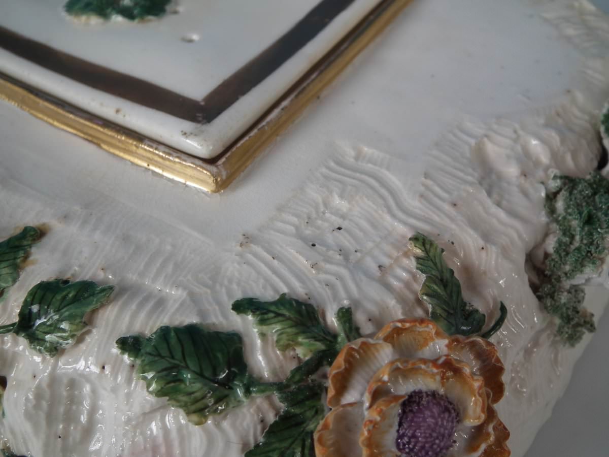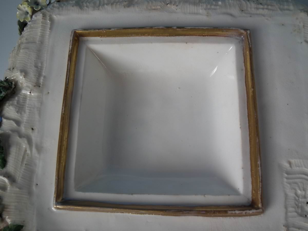 Victorian, circa 1850. 8.7ins high, 11.4ins wide, 9.1ins depth. Staffordshire Pottery potpourri holder which features a large, ornate country cottage/house, stood on a shaped base.