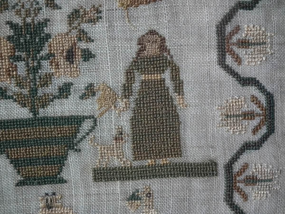 A good set of motifs, some finely embroidered, including two young ladies with their dogs by their sides,