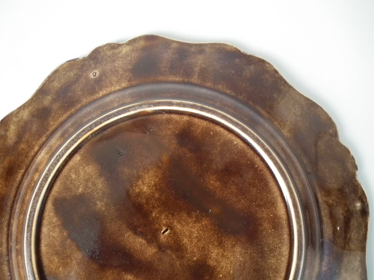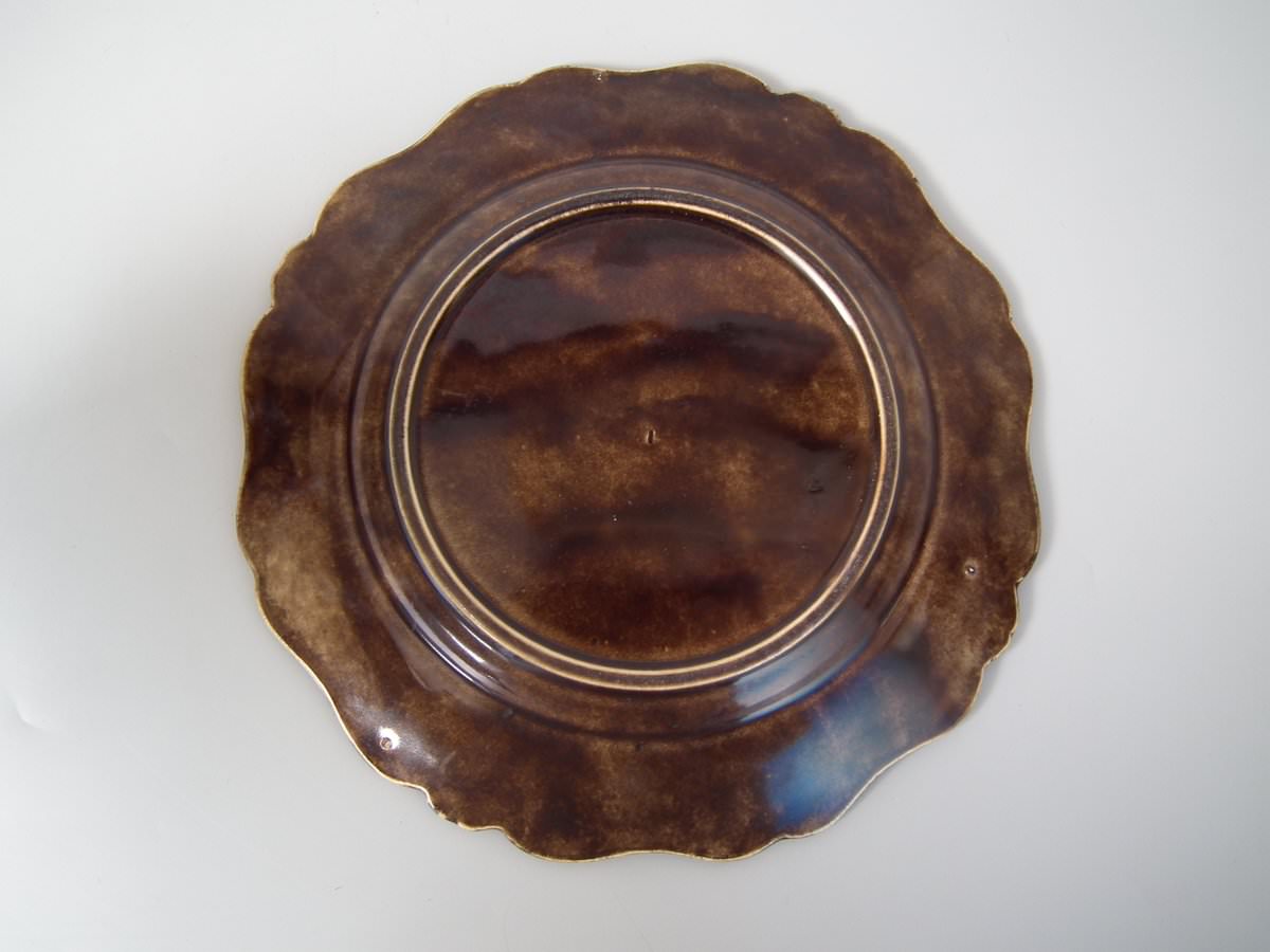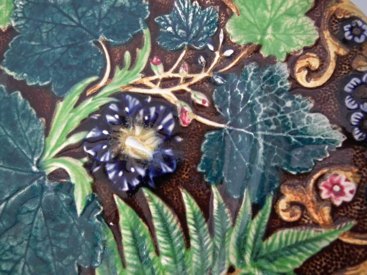 Victorian, circa 1880. 9.1ins high, 9.1ins wide, 1ins depth. Alcock Majolica plate which features flowers and leaves.