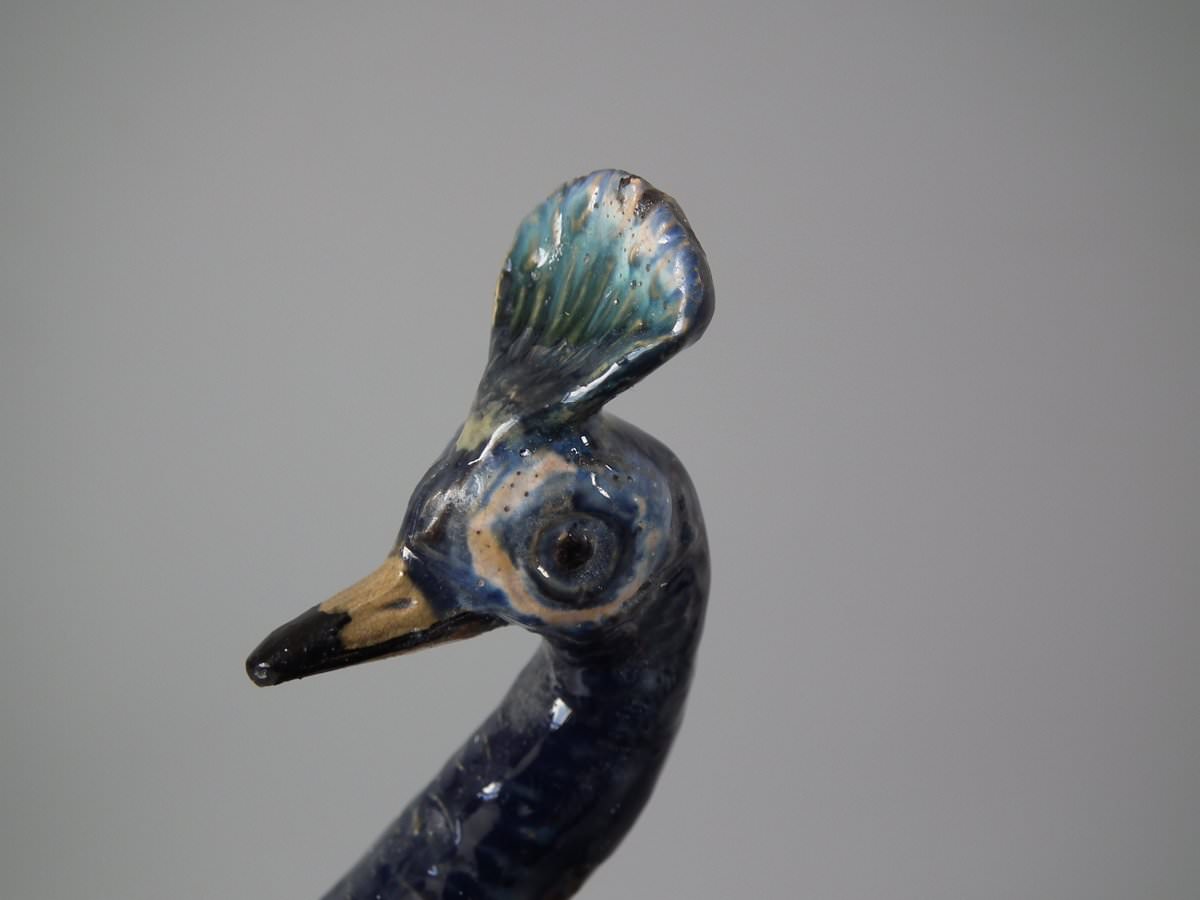 RESTORATION. Peacock's crest reglued and join retouched