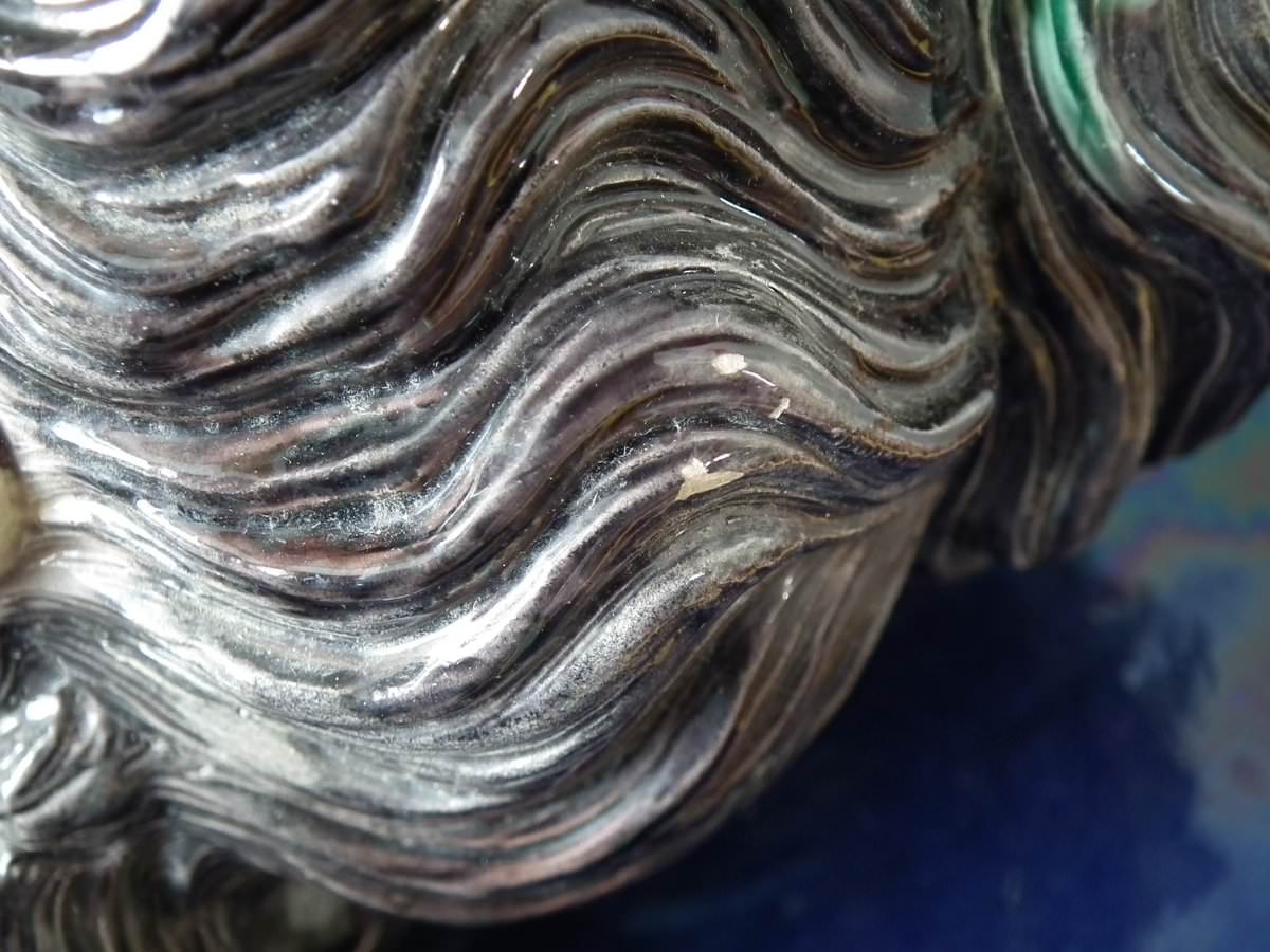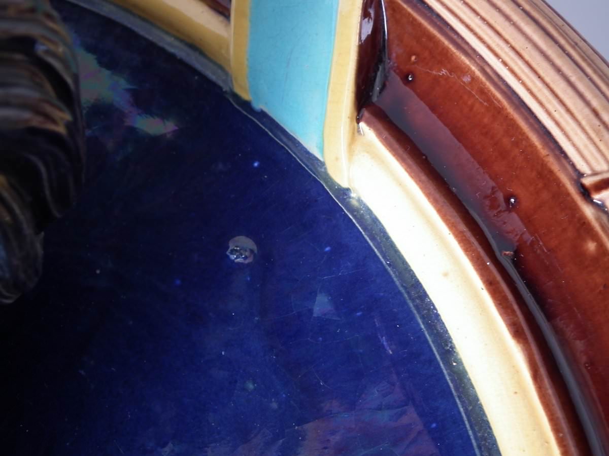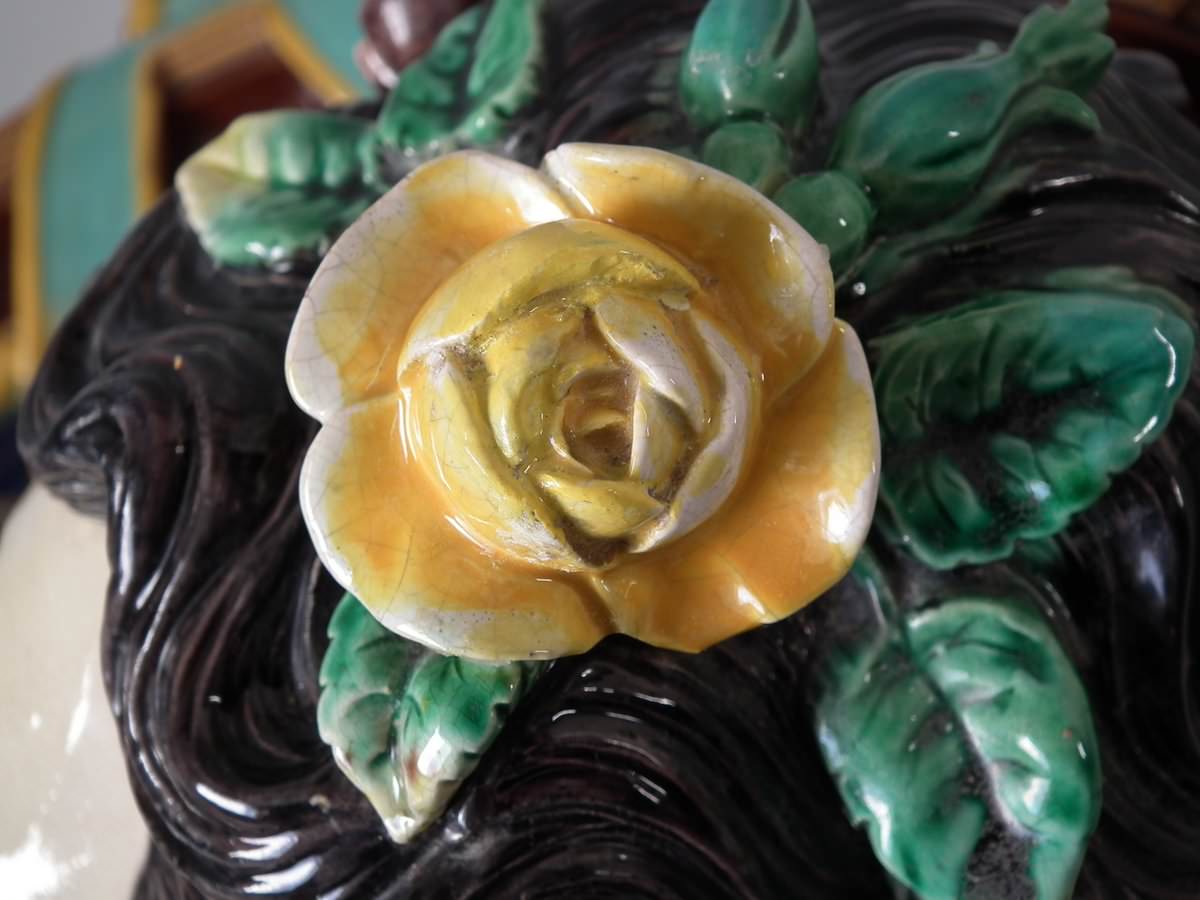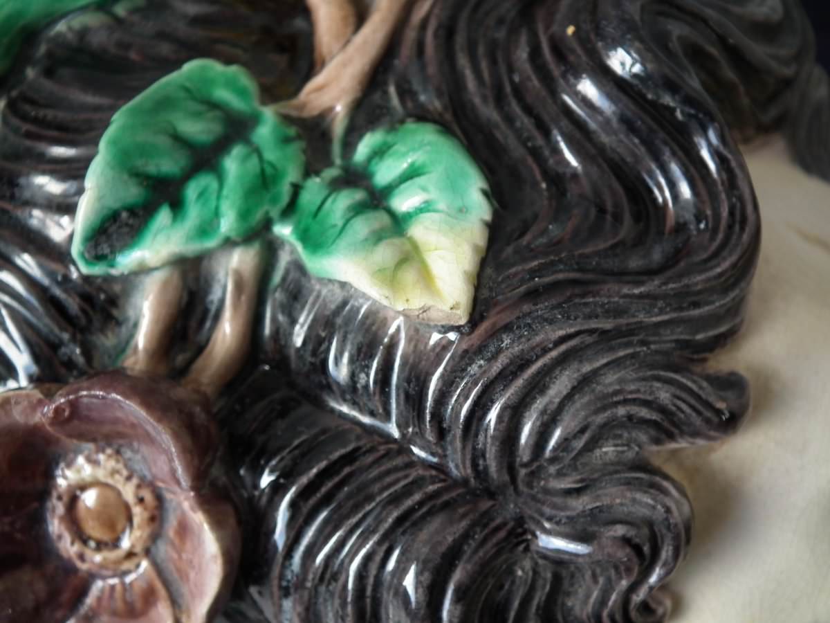 Circa 1880. 18.1ins high, 18.1ins wide, 6.7ins depth. Schiller Majolica wall plaque which features the head and shoulders of a lady, molded in deep relief.
