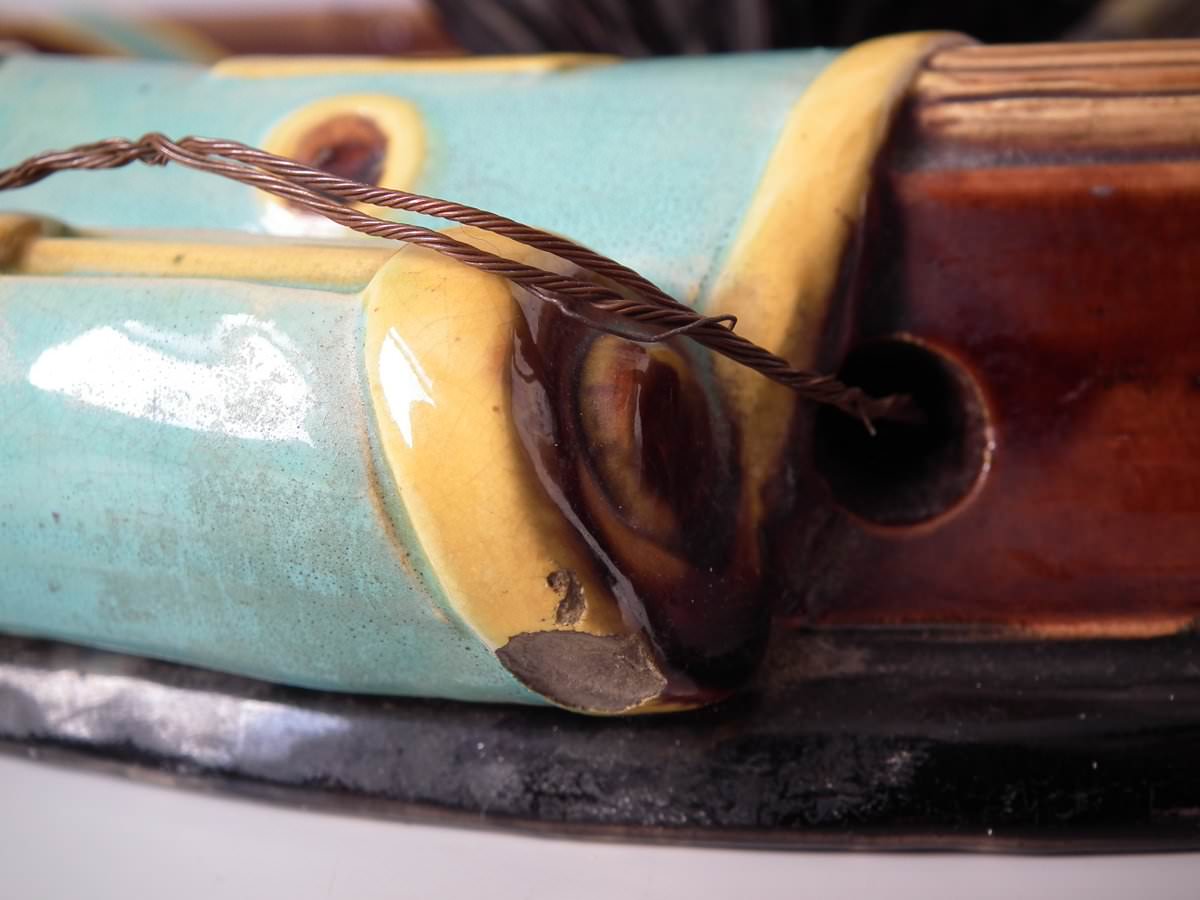RESTORATION. Filled chips to the rose and poppy in ladys hair.