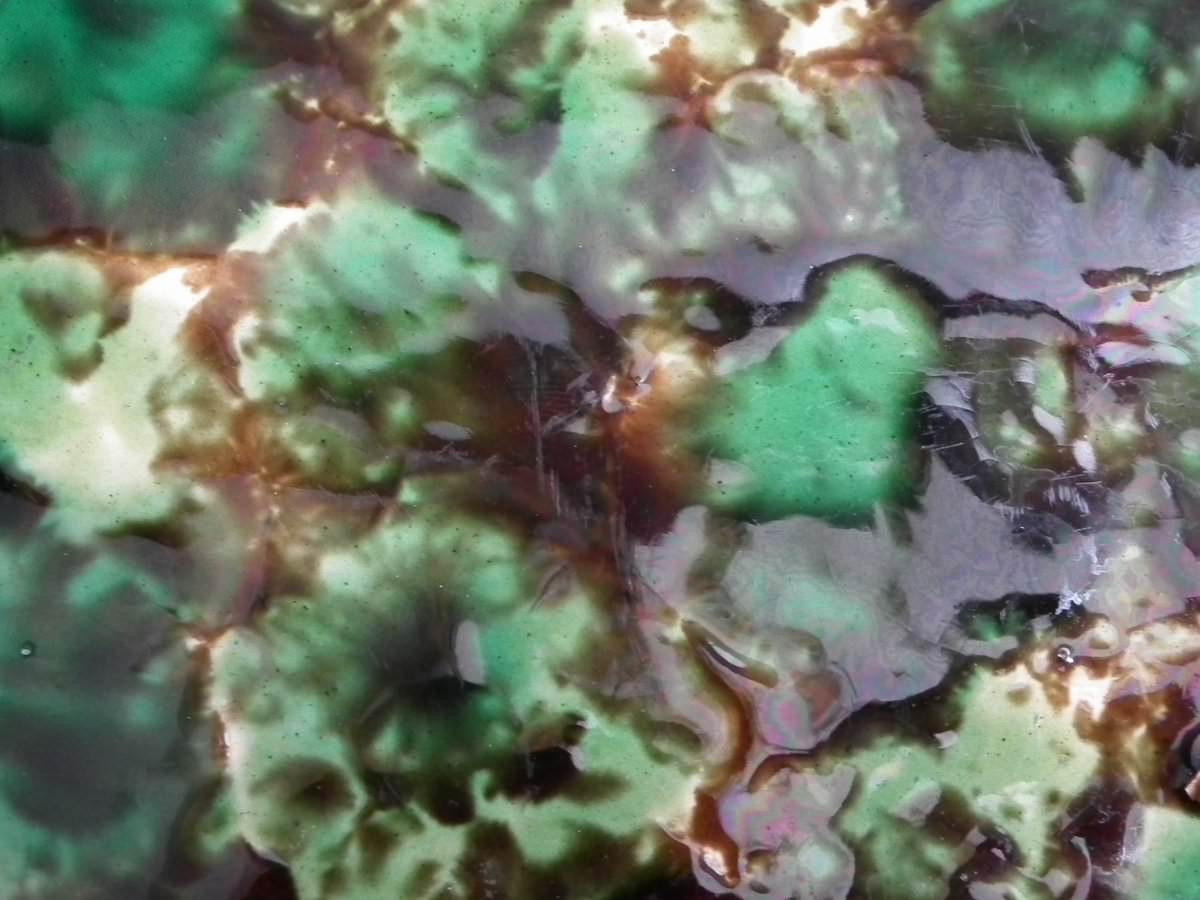 Turquoise ground version. Colouration: green, brown, ochre, are predominant.