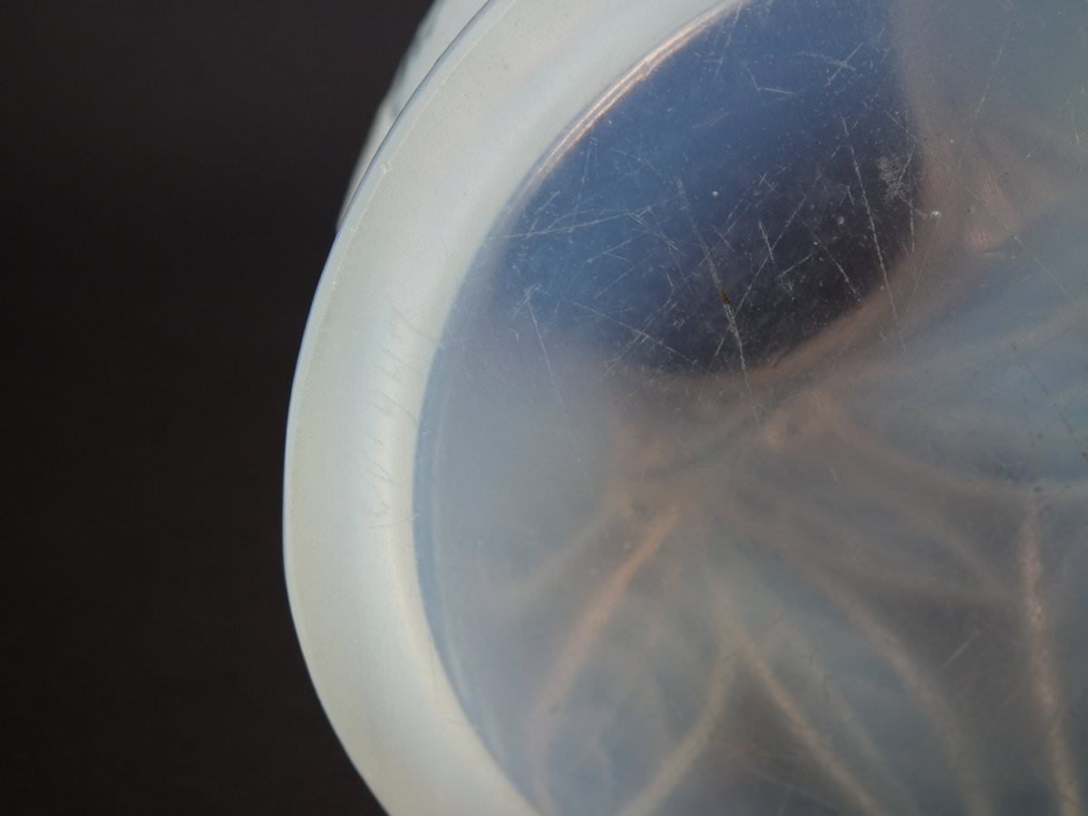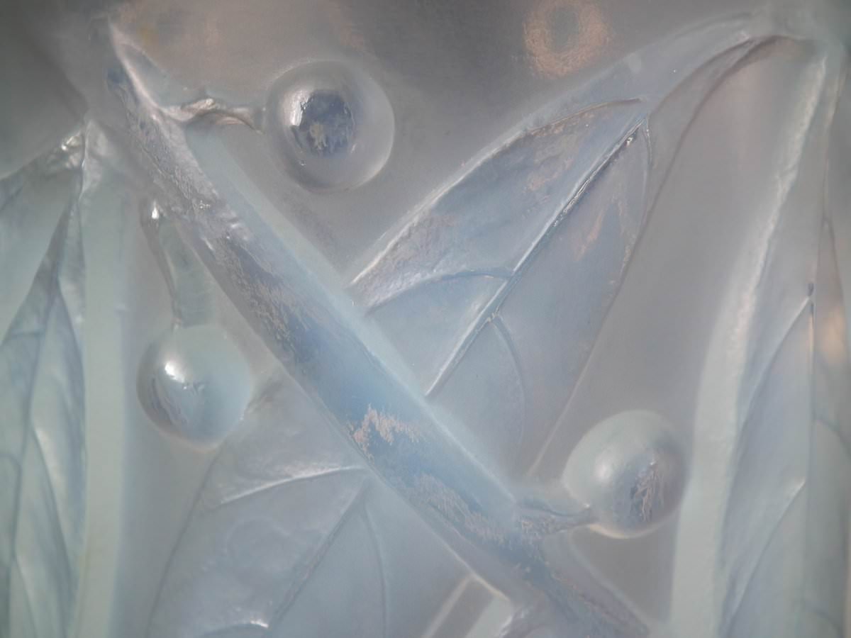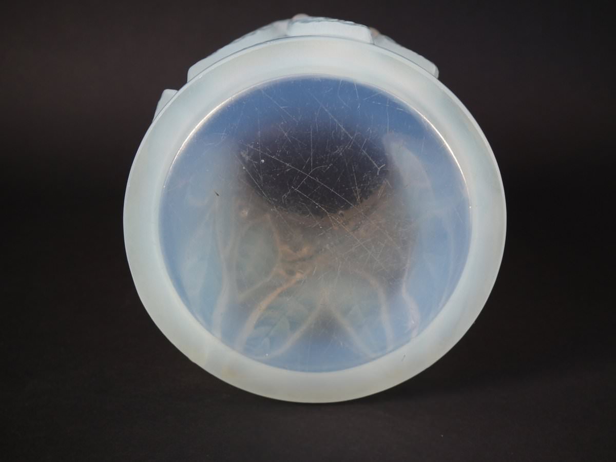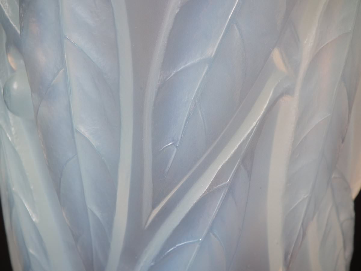 Introduced in 1922. Height: 18cm (7ins). Width: 11cm (4.25ins). Depth: 11cm (4.25ins). Rene Lalique Opalescent Glass 'Laurier' Vase.