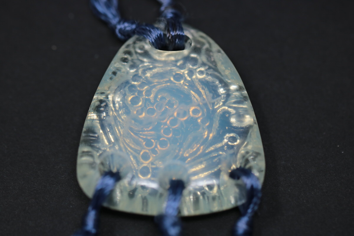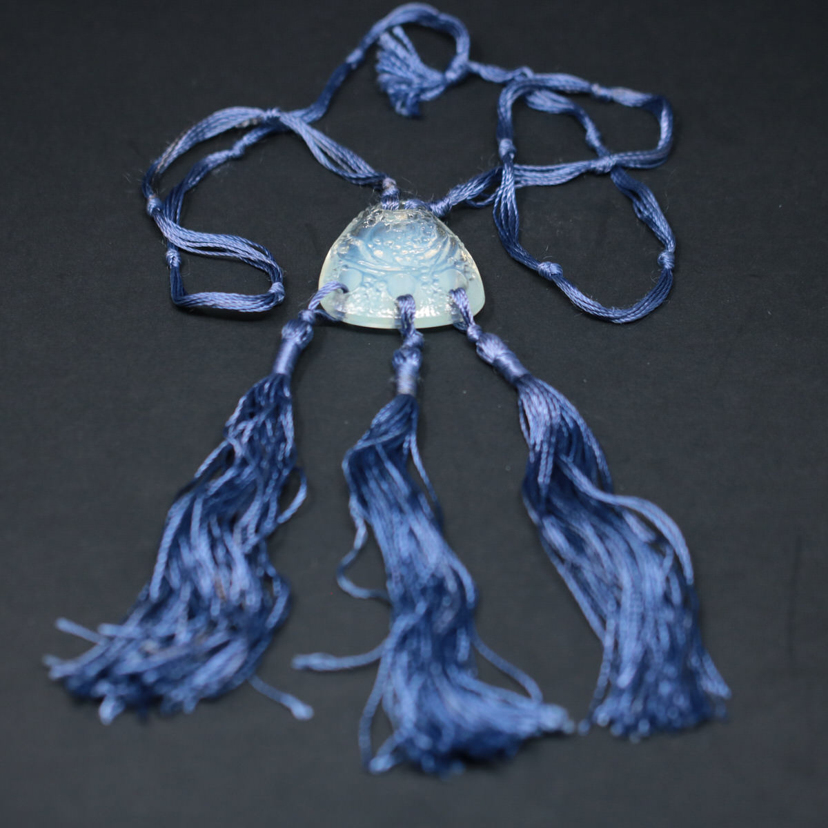Threaded tassles and necklace. Engraved makers mark, 'Lalique'.
