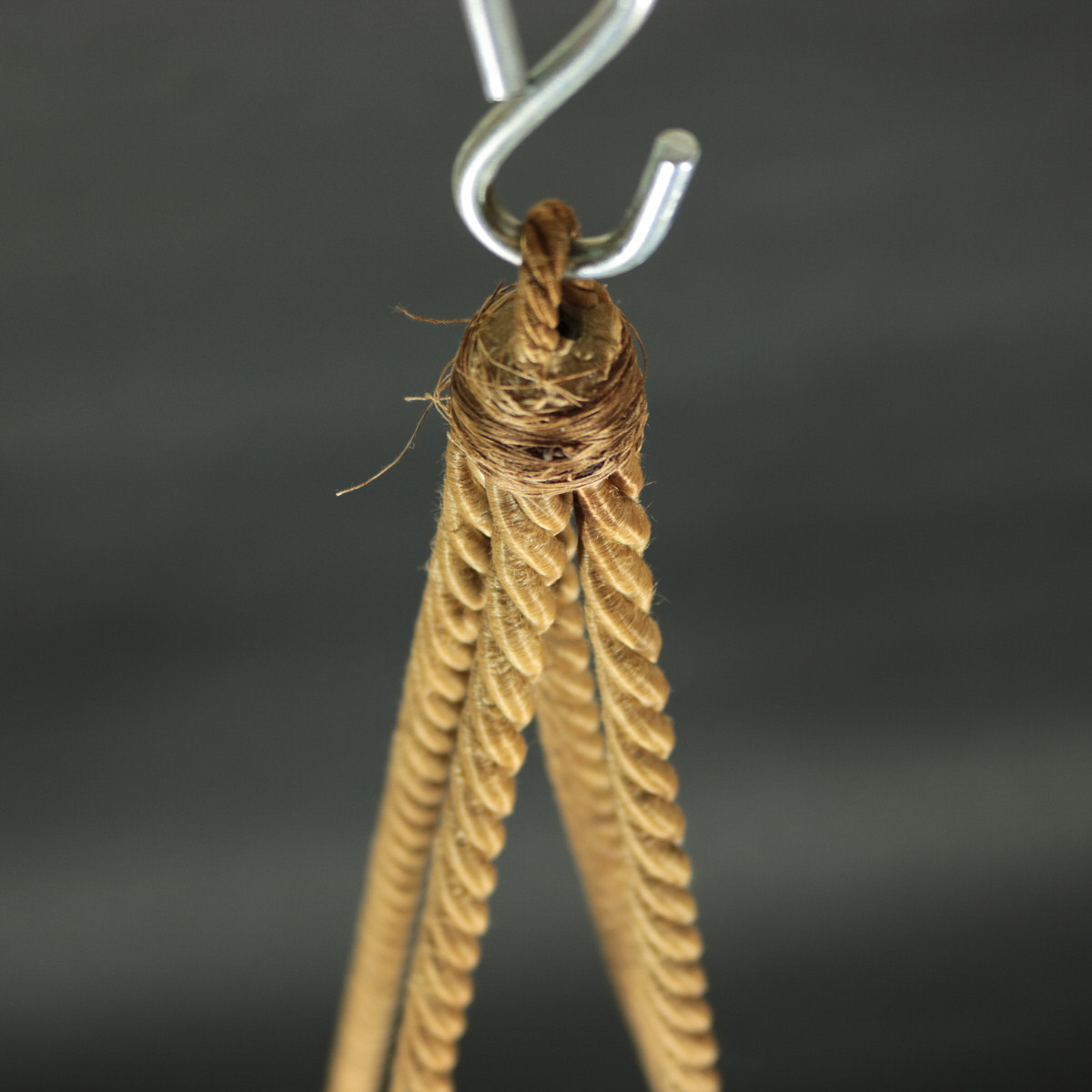 Four hooks bolted around the sides (removable), which attach the rope for hanging the shade. Original rope included.