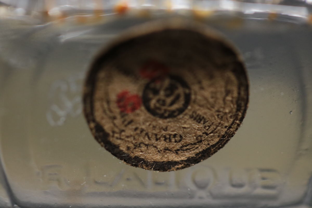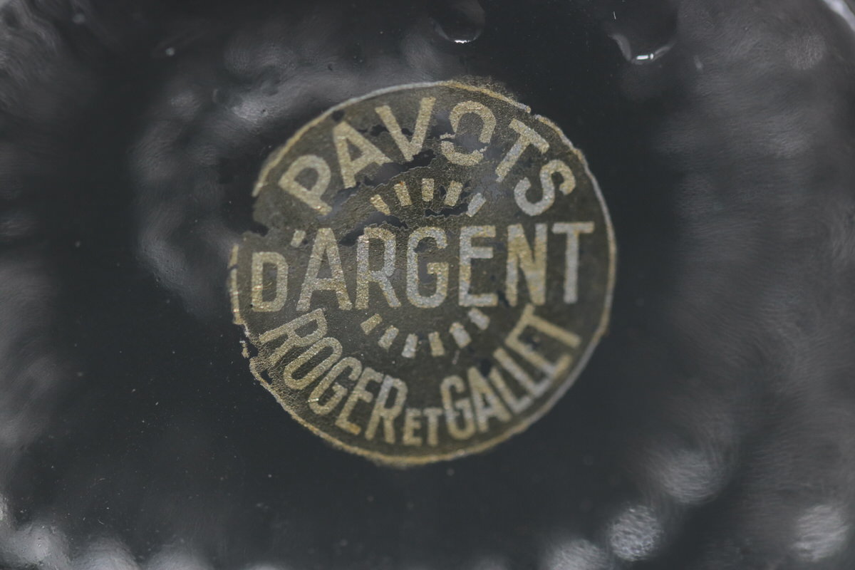 Introduced in 1927. 3.4ins high, 2.7ins wide, 0.8ins deep René Lalique Glass, Roger & Gallet - 'Pavots D'Argent' Perfume Bottle.