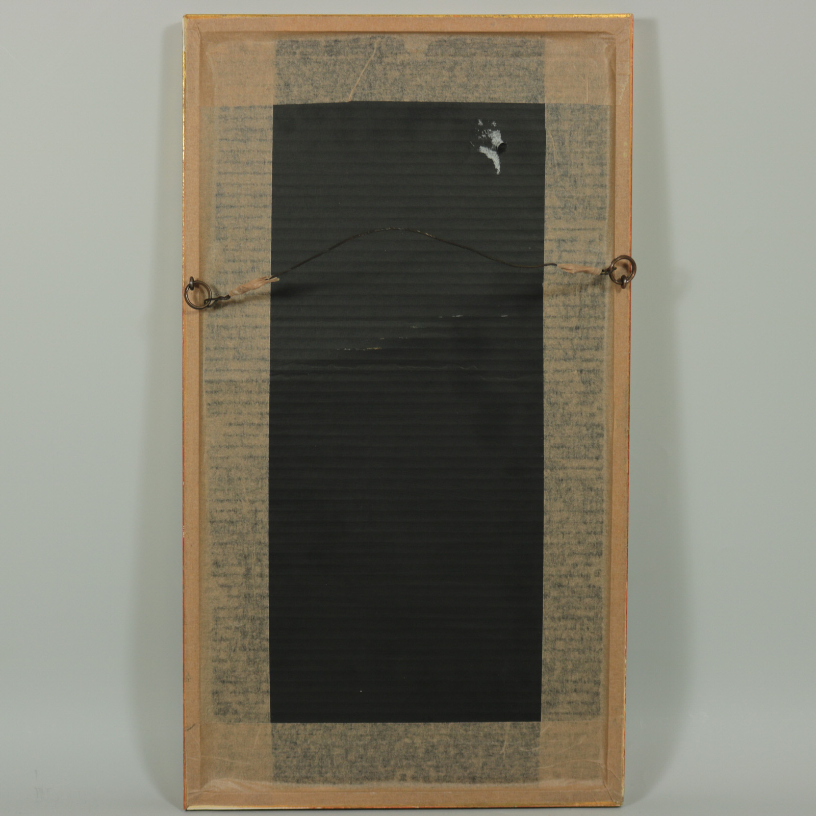 Framed in an old wood frame, gold painted, with glass and added spacers. Mounting: stitched to the original card mountboard. Finished with card backboard sealed with tape.
