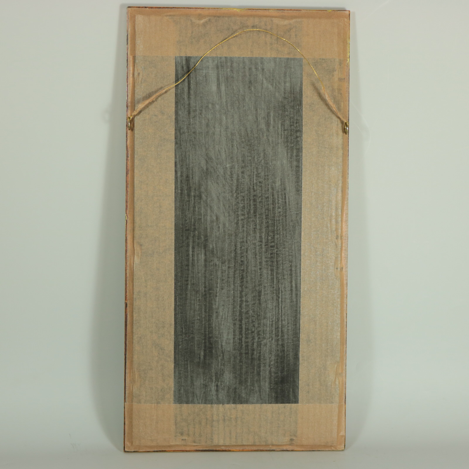 Framed in an old wood frame with glass.