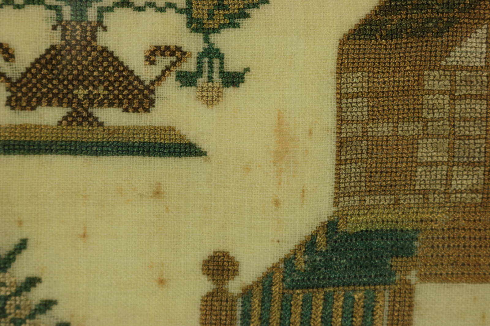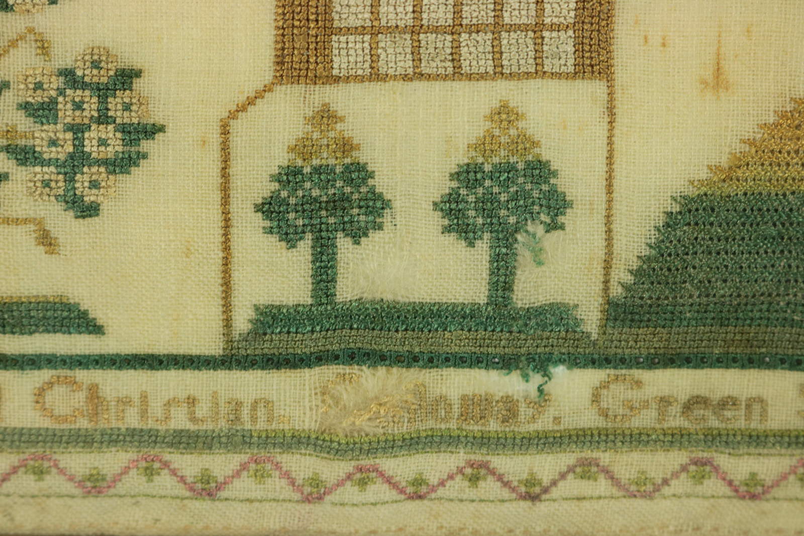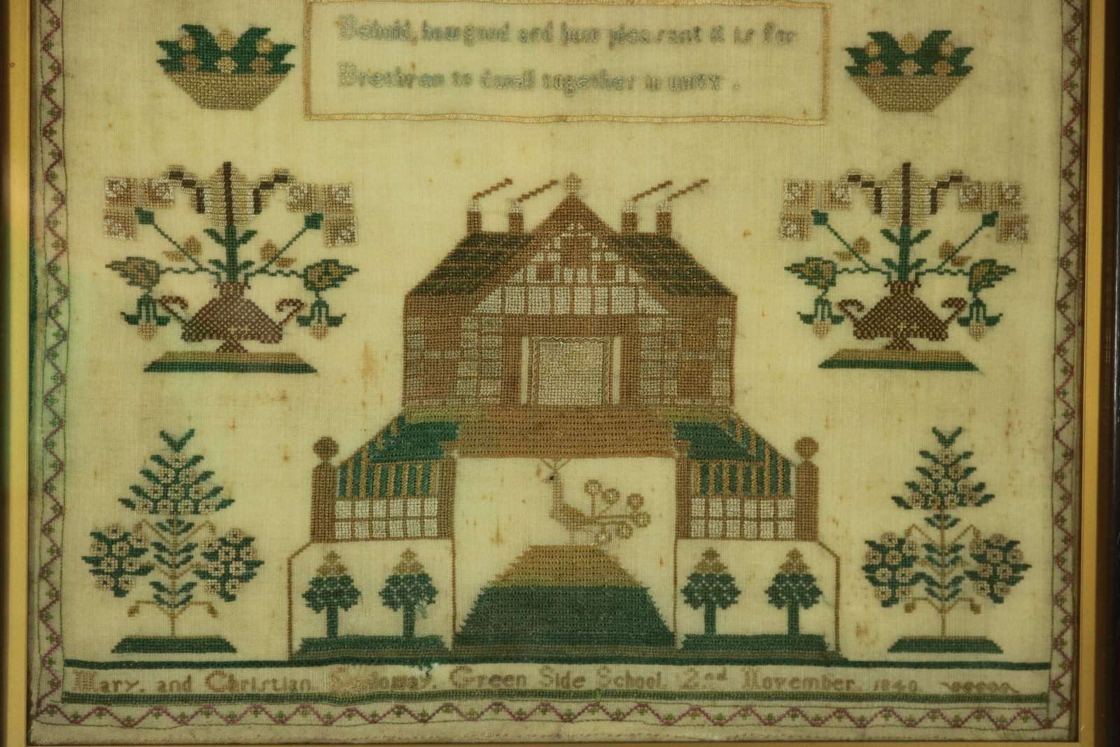 Victorian, dated 1840. 15.7ins high, 12.6ins wide, 1.2ins deep. Antique Scottish Sampler, 1840, by Mary & Christian ???loway.