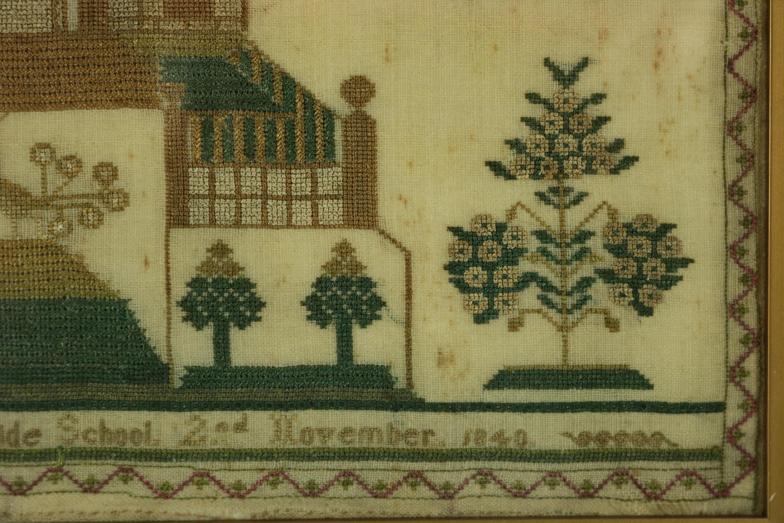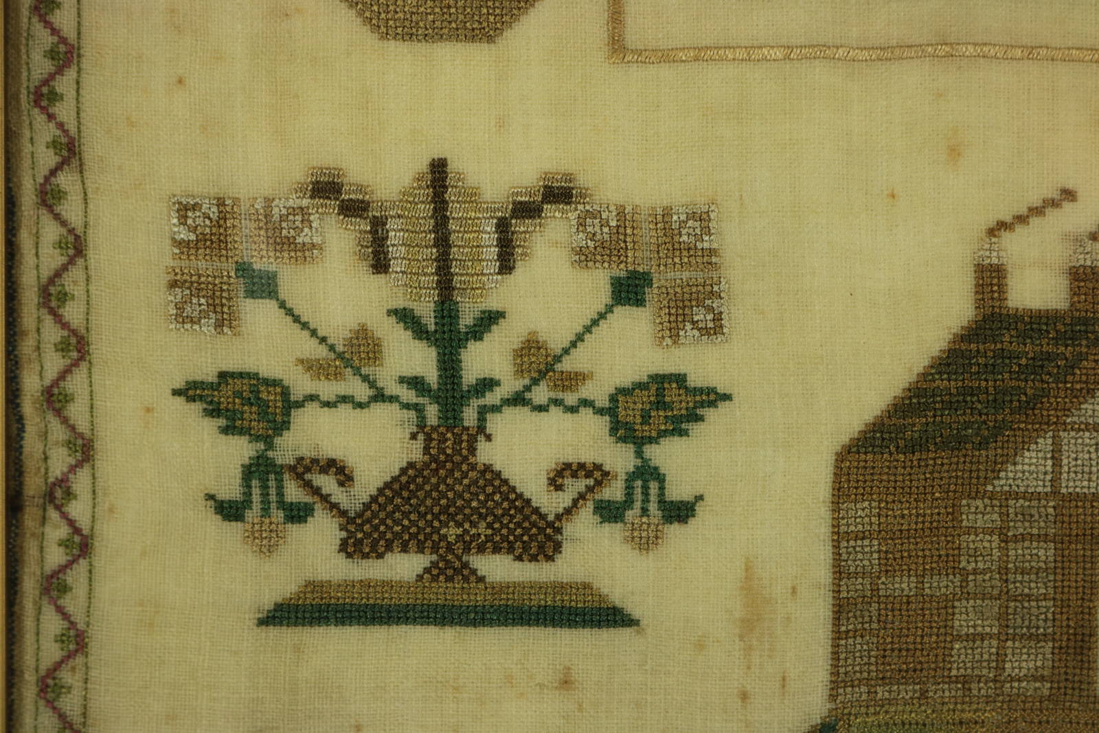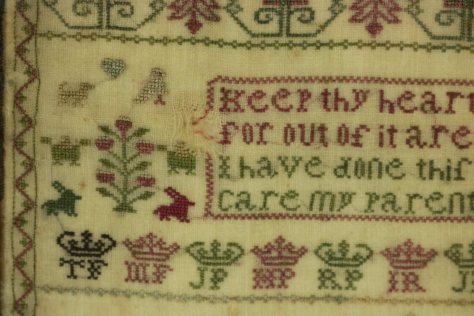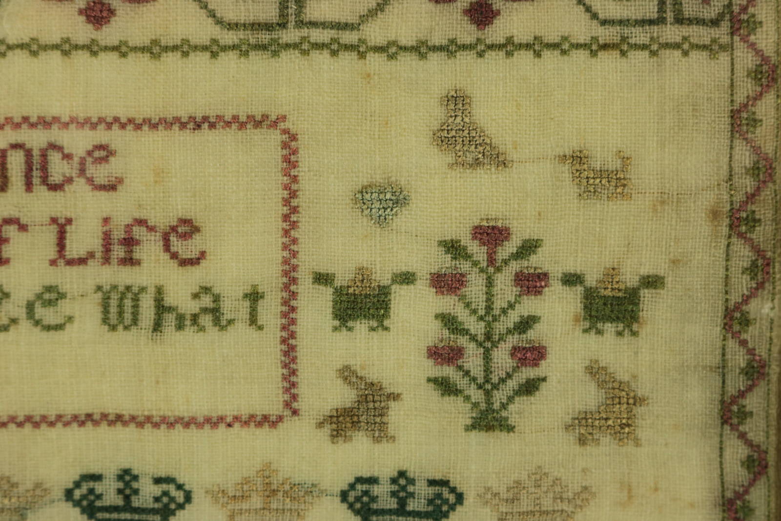 Victorian, dated 1840. 15.7ins high, 12.6ins wide, 1.2ins deep. Antique Scottish Sampler, 1840, by Mary & Christian ???loway.