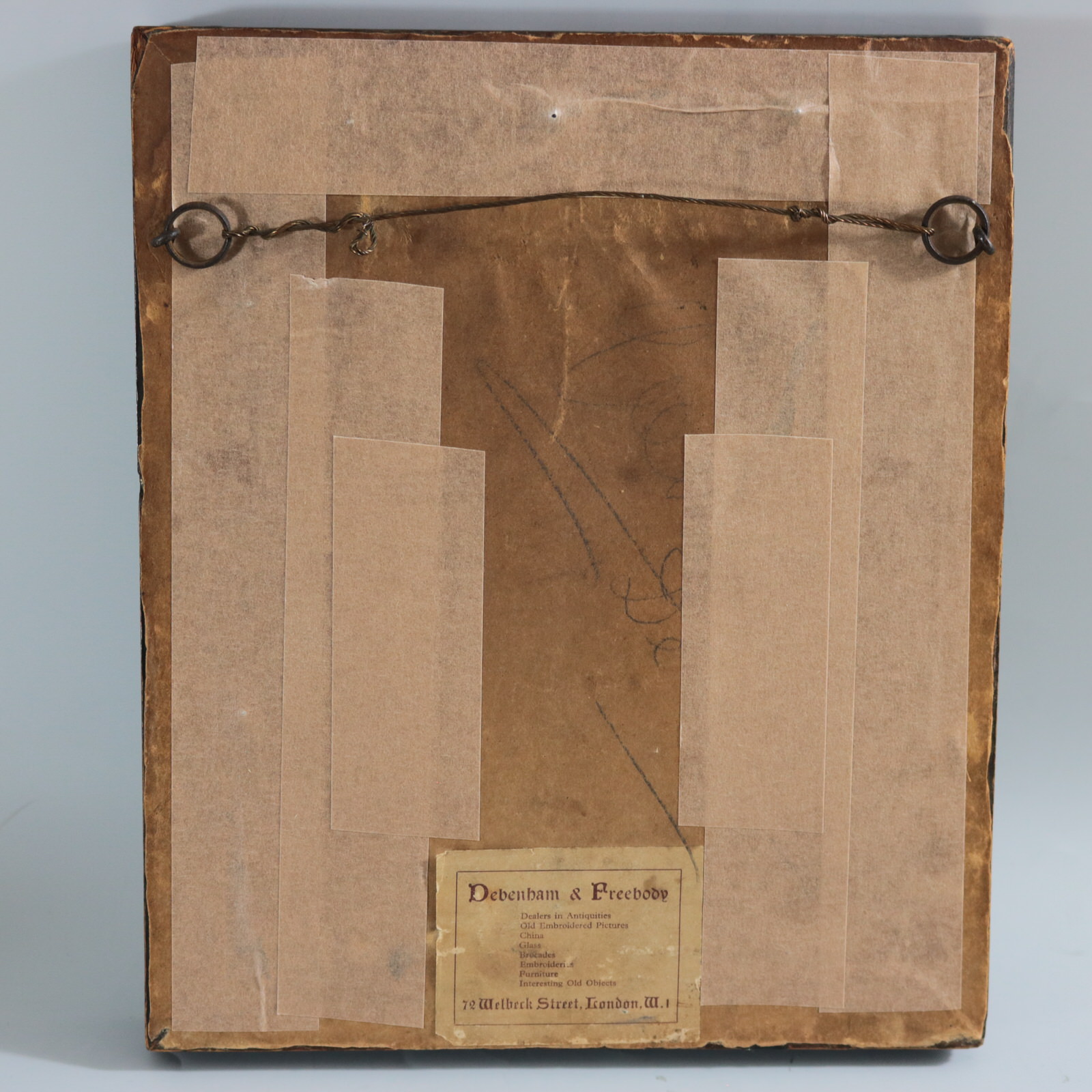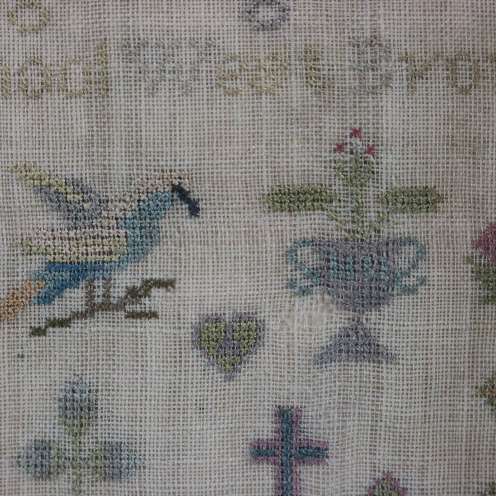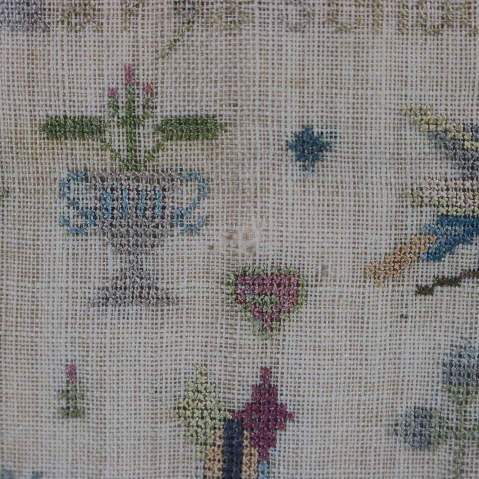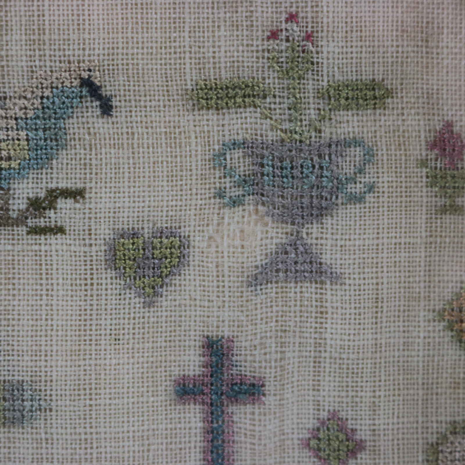 Mounting: The sampler is fixed to a wooden board. Frame backed with wood and sealed with tape.