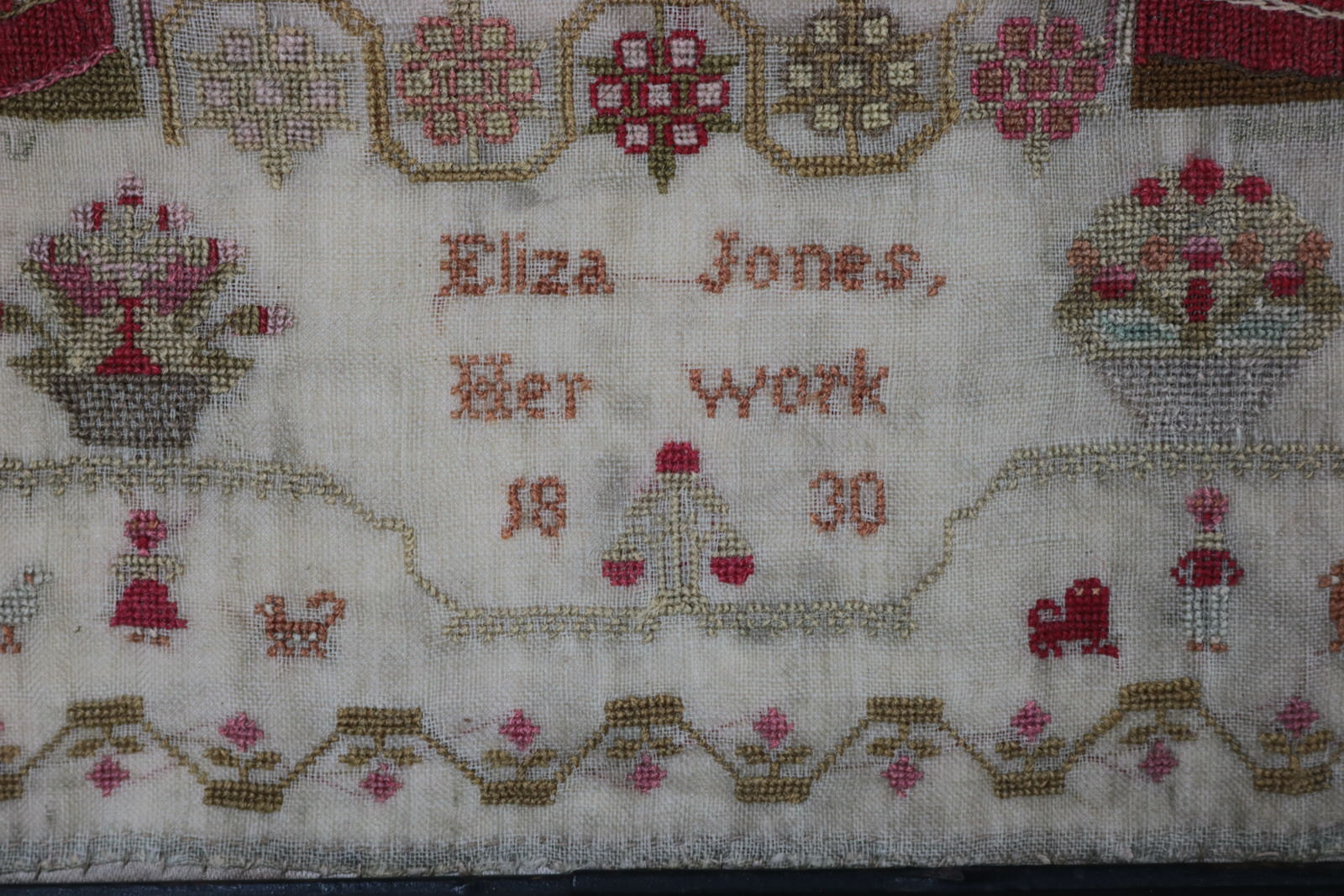 Signed and dated 'Eliza Jones Her work 1830'.