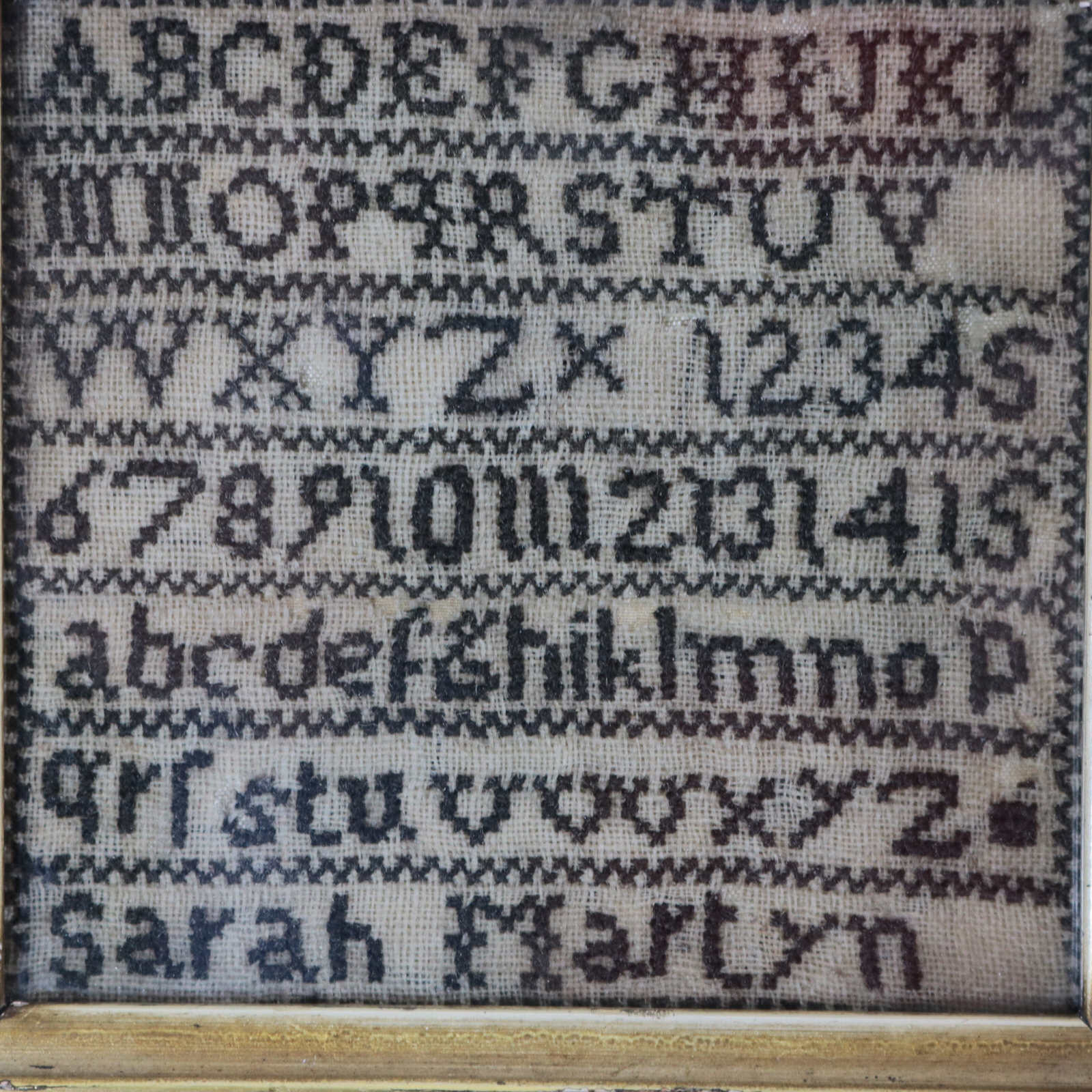 Mounting: The sampler is loose mounted onto linen. Frame backed with card and sealed with tape.