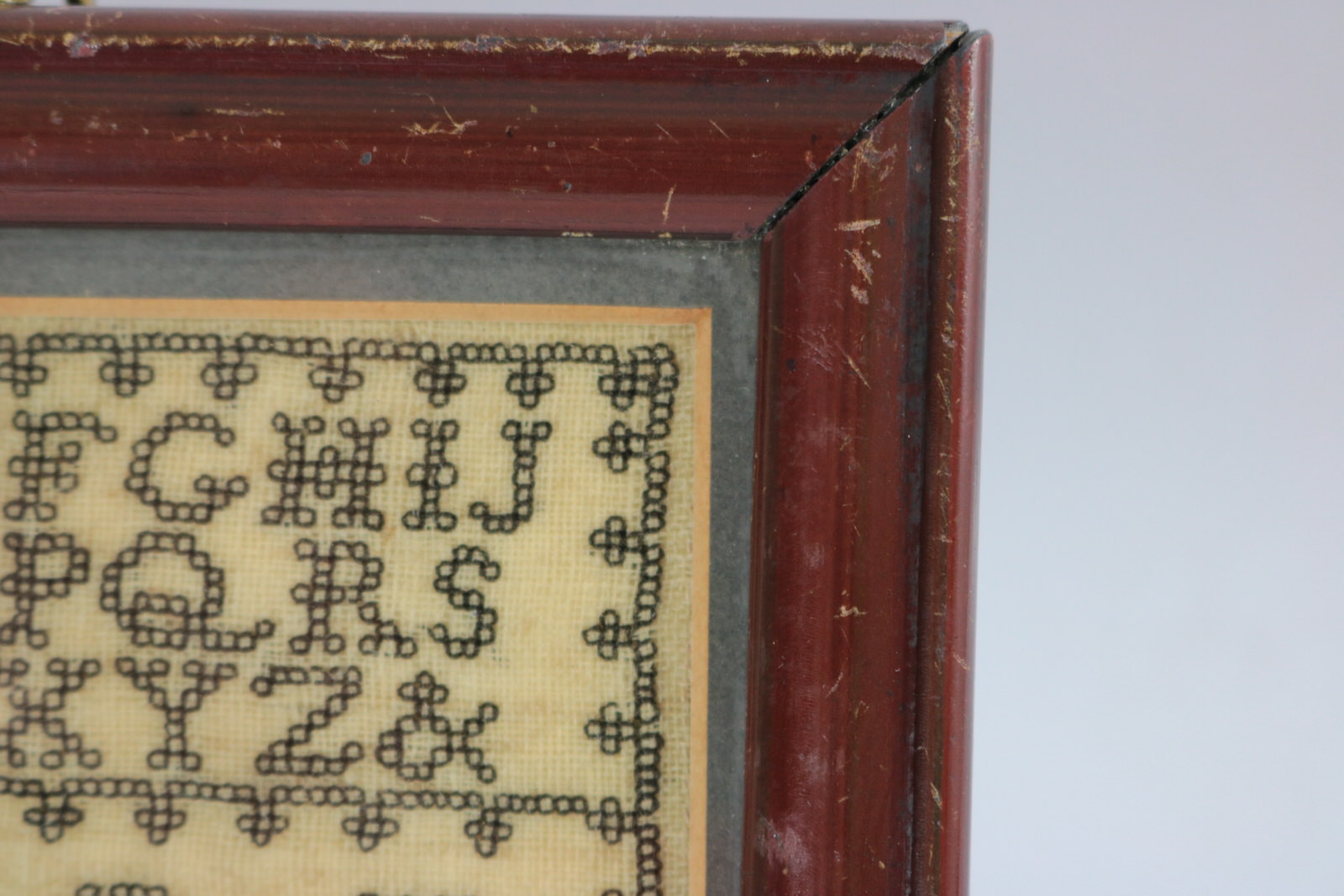 Mounting: The sampler is loose mounted onto board. Frame backed with paper and sealed with tape.