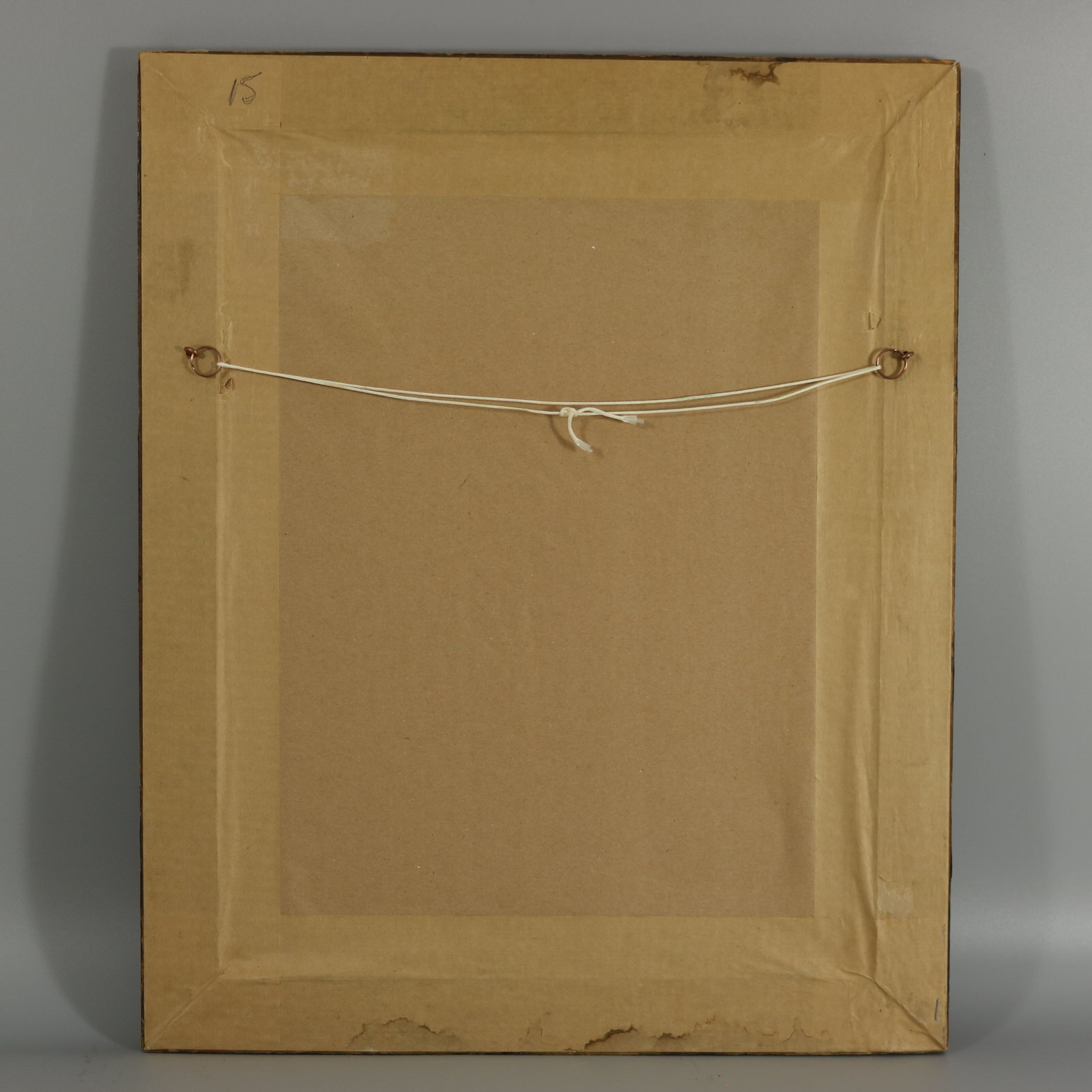 Stretching is slightly uneven in places. Frame showing wear and chips, but structurally sound.