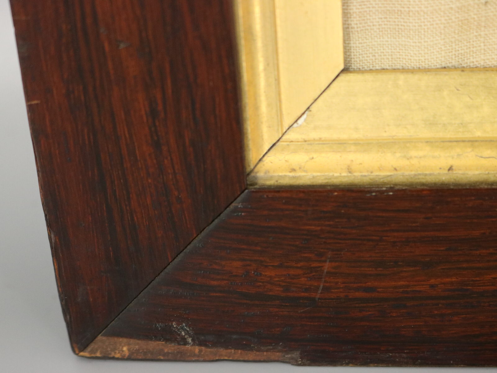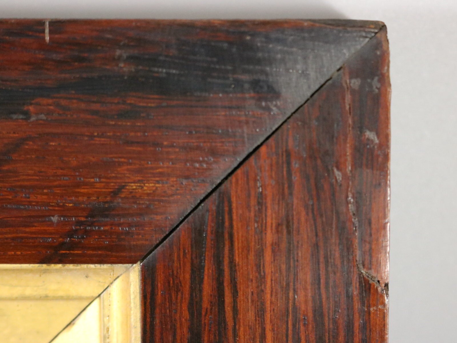 Frame showing some wear, veneer is chipped in corners, but is structurally sound and in our opinion could be hung 'as is'.