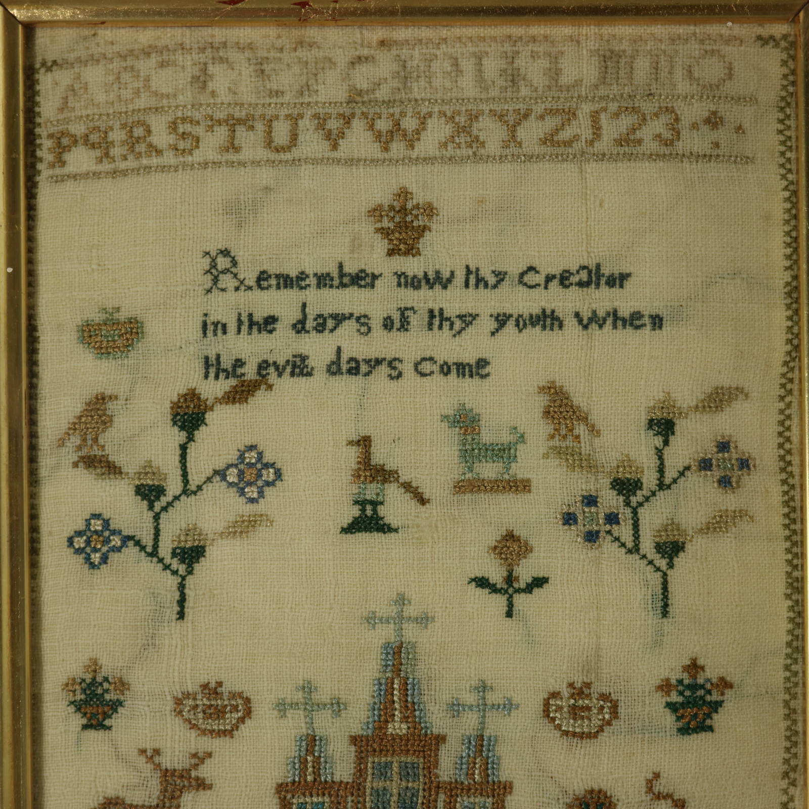 Inscription reads, 'Remember now thy Creator in the days oF thy youth When the evil days come'.