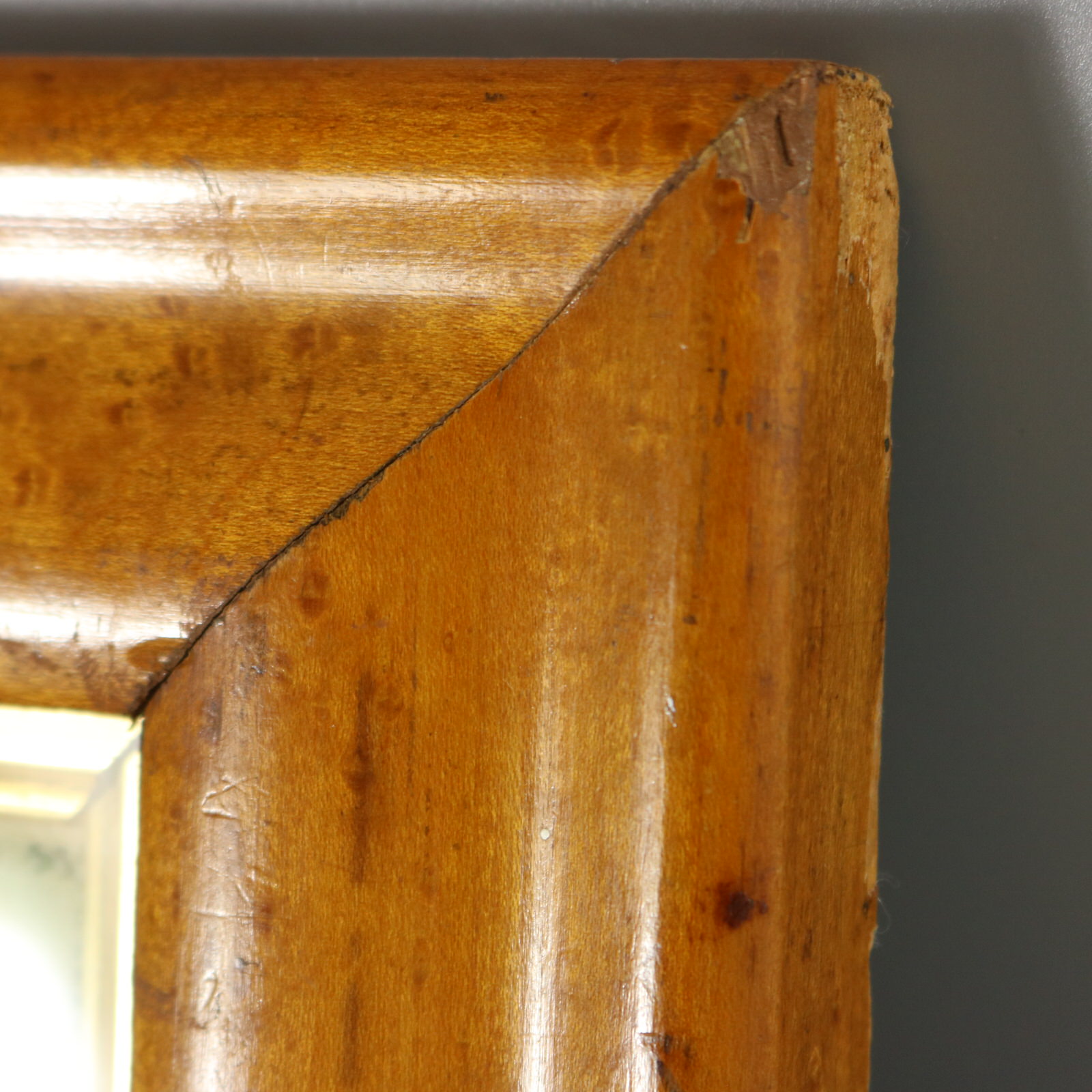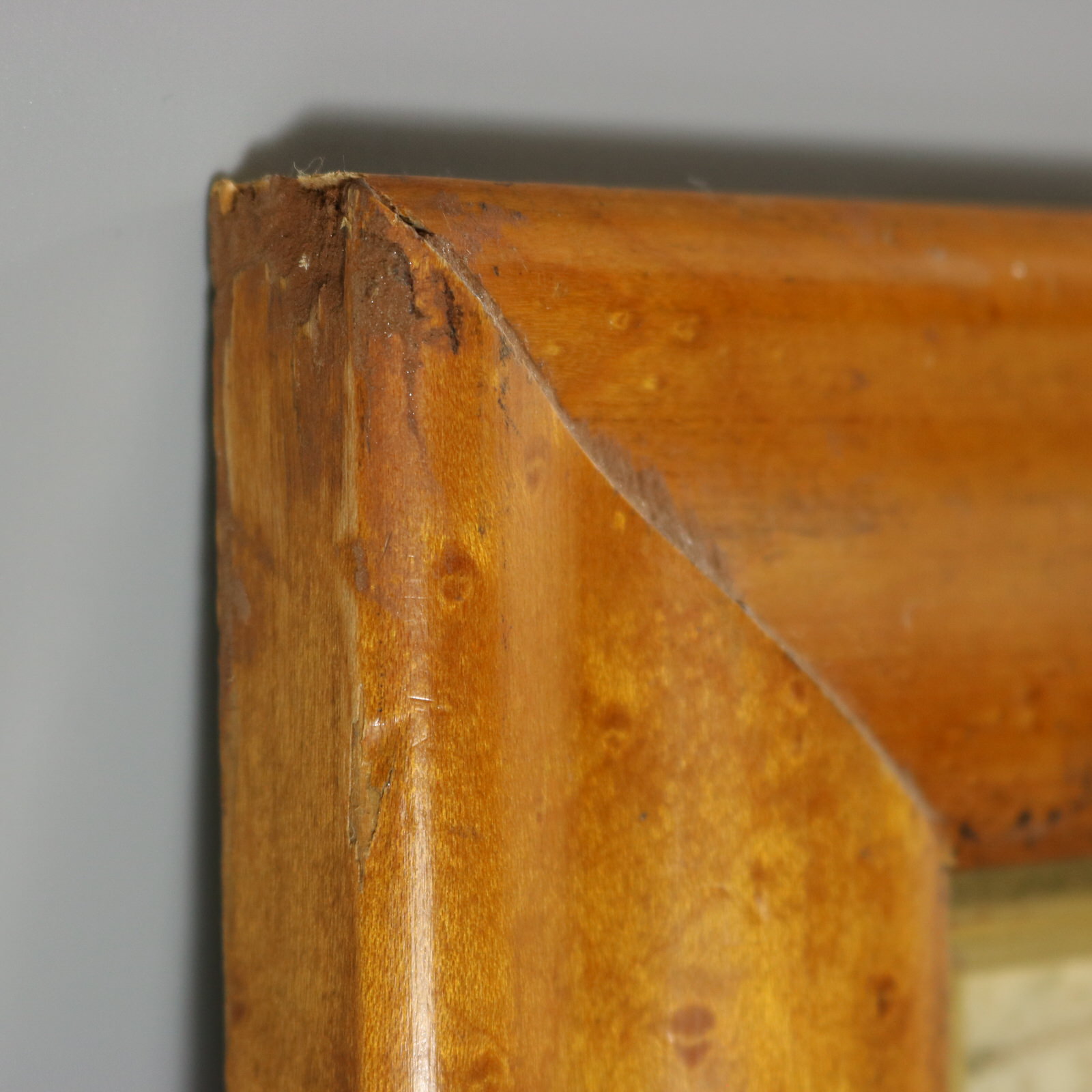 Framed in an old, burr maple frame with glass.