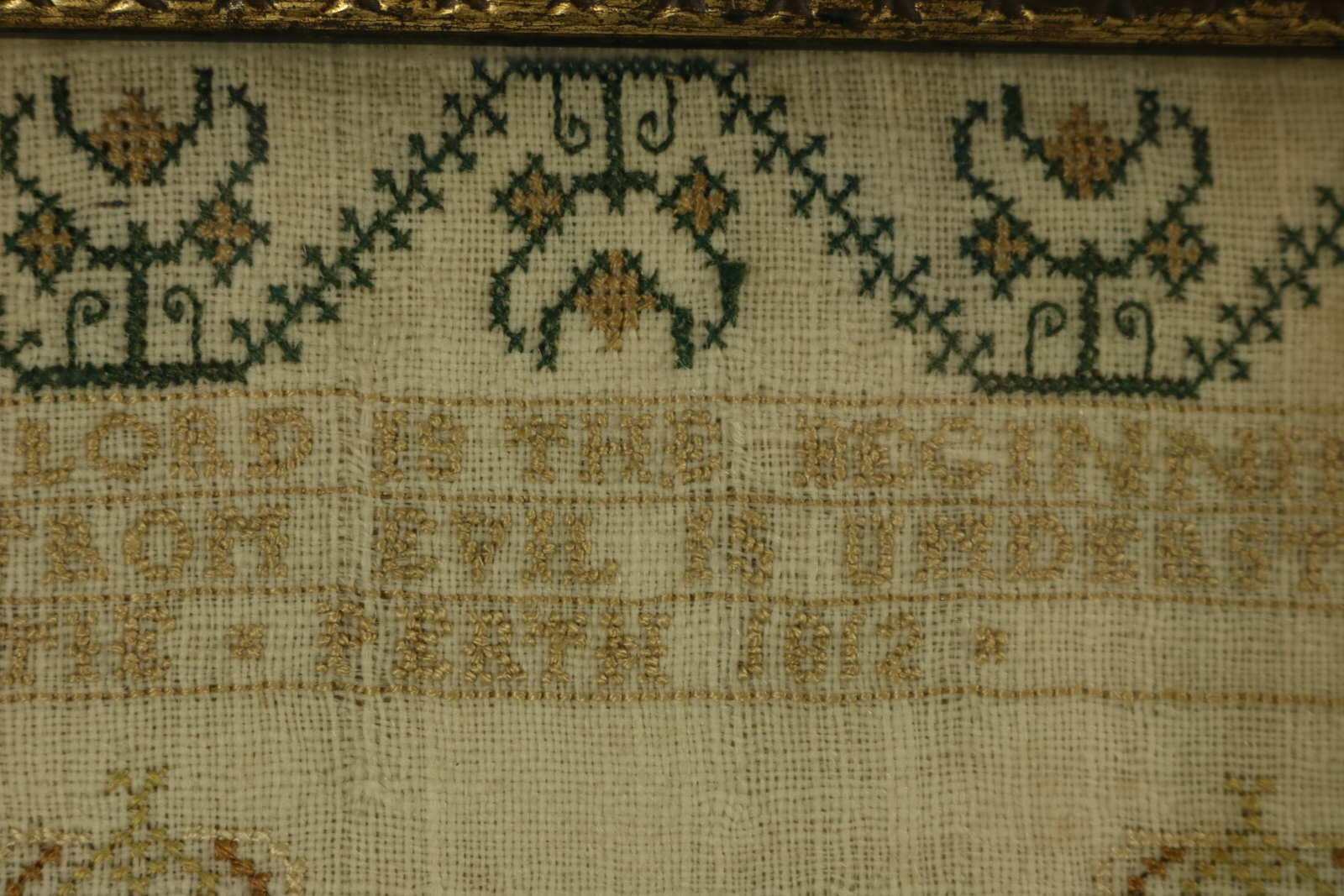 Signed and dated 'MARGARET CHRISTIE. PERTH 1812'. Perth is a town in central Scotland.