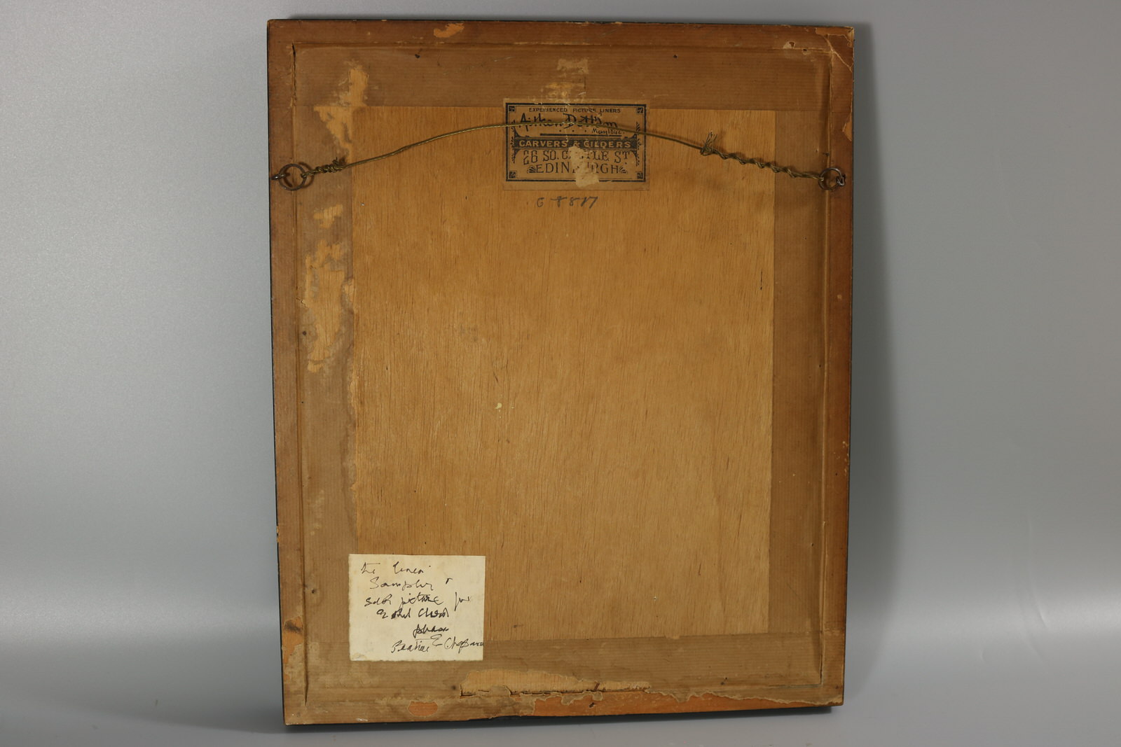 Mounting: The sampler is fixed to card. Frame backed with wood and sealed with tape.