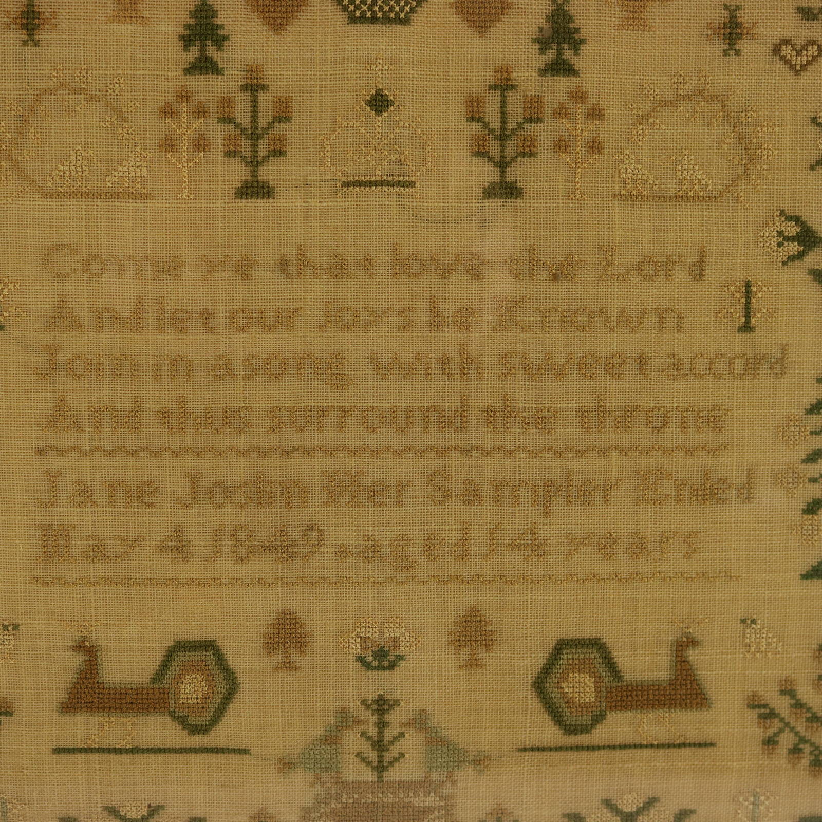 Signed and dated, 'Jane Joslin Her Sampler Ended May 4 1849 aged 14 years.'.