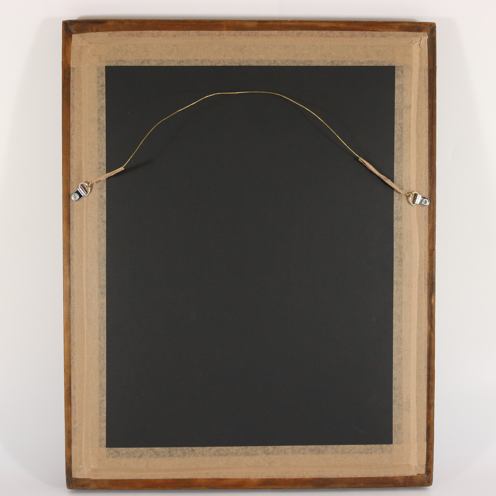 Framed in an old, possibly original, mahogany frame with rippled, old glass.