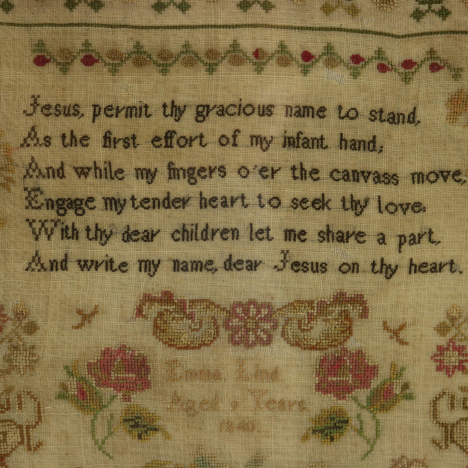 Signed and dated, 'Emma Lind Aged 9 Years 1840'.