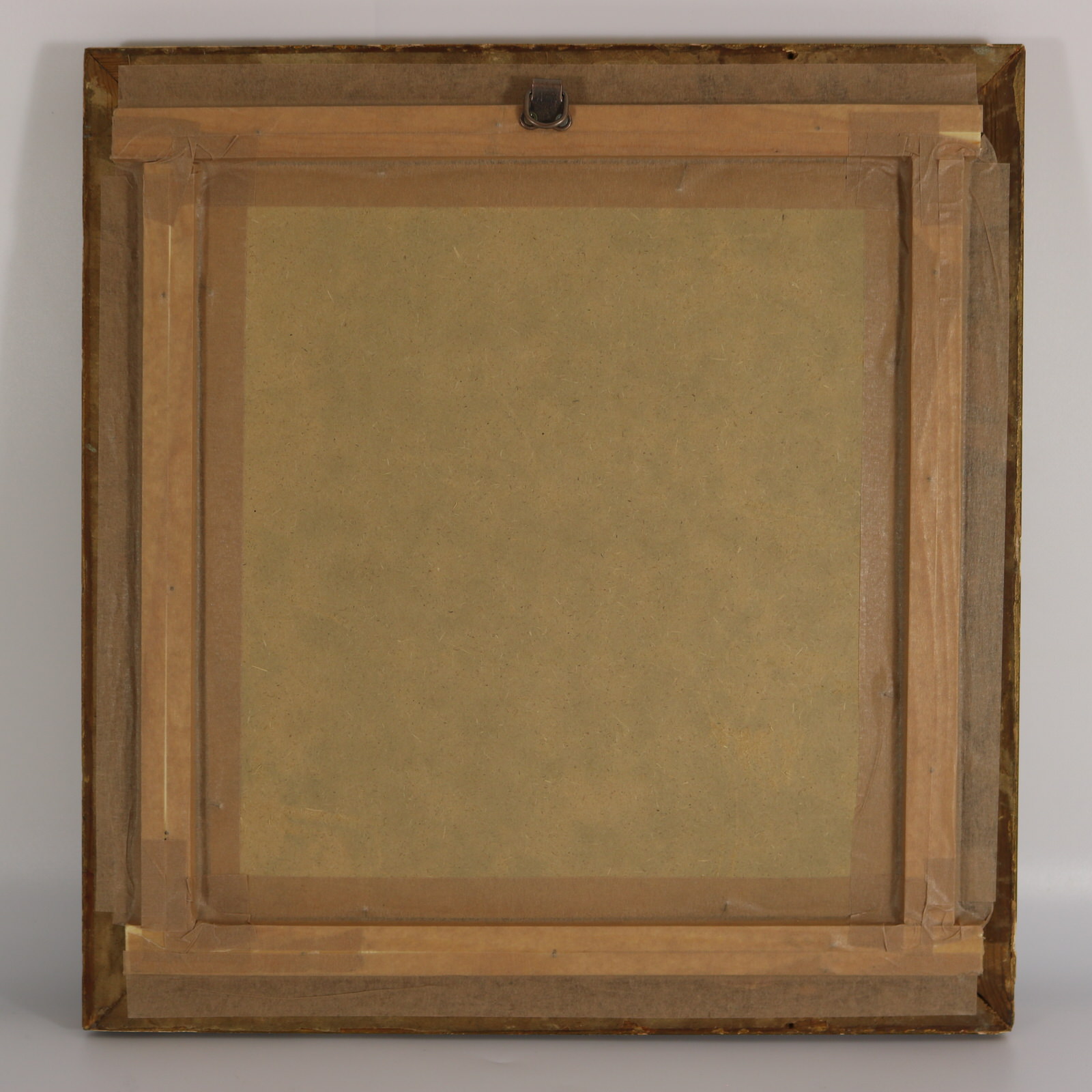 Frame backed with card and sealed with tape.