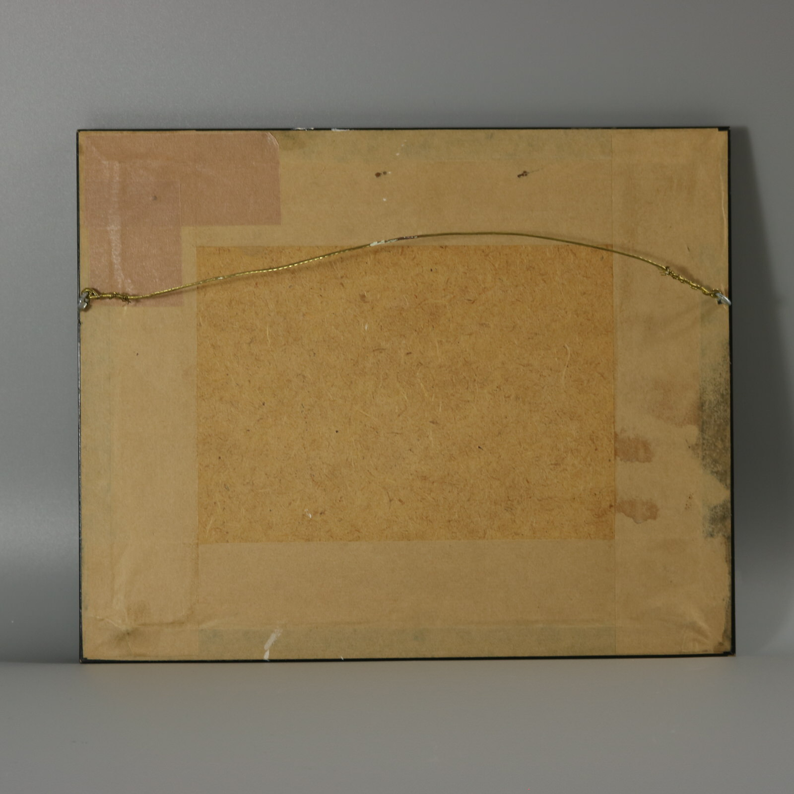 Neatly and evenly stretched. Frame in good condition, ready to hang.